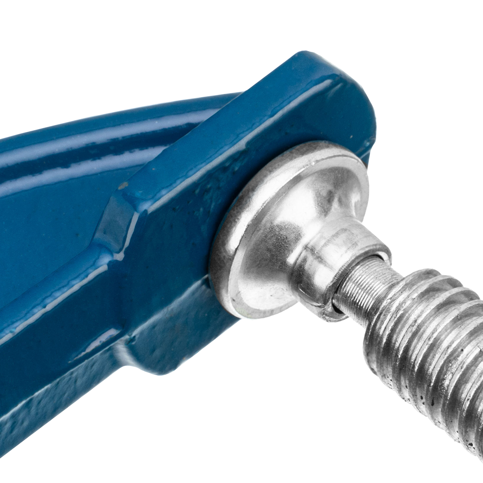 - Надежная фиксация деталей — струбцина имеет подвижный зажим, установленный на шаровой шарнир.