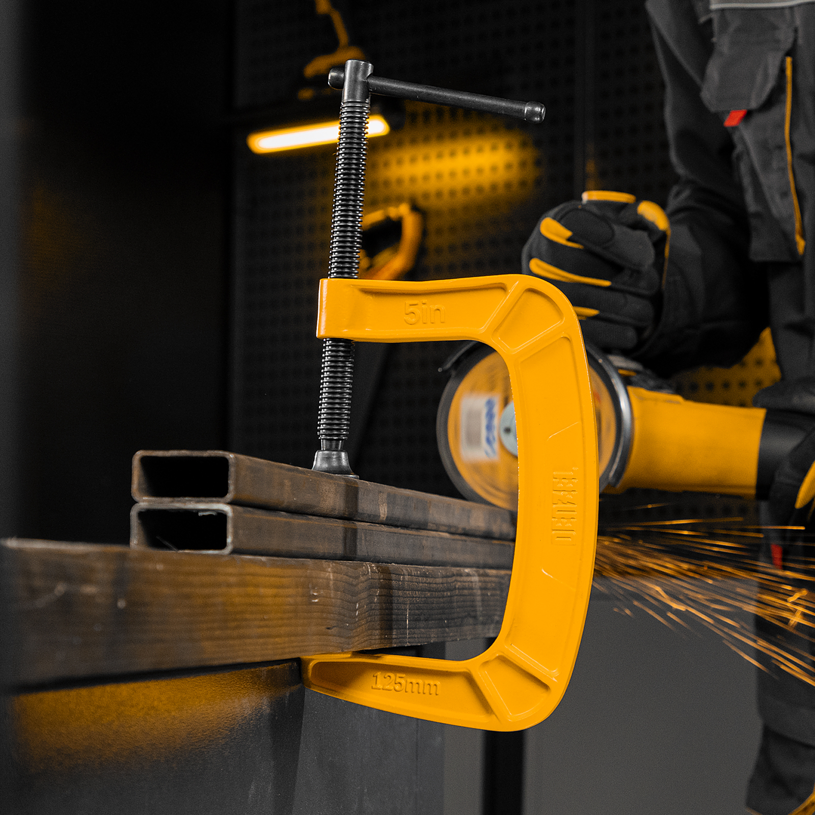 G-образная струбцина Denzel 20644 с максимальной шириной зажима 125 мм используется для фиксации заготовок или закрепления их на верстаке, станке или между собой. Позволяет склеивать детали, а также сверлить их, шлифовать, опиливать и проводить другие работы. Может использоваться во время выполнения сварочных работ. Винт с трапециевидной резьбой обеспечивает надежную фиксацию предметов. Струбцина применяется в слесарном и столярном деле, будет полезна также домашнем хозяйстве.