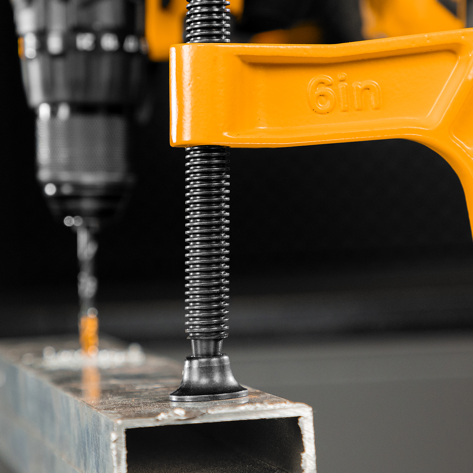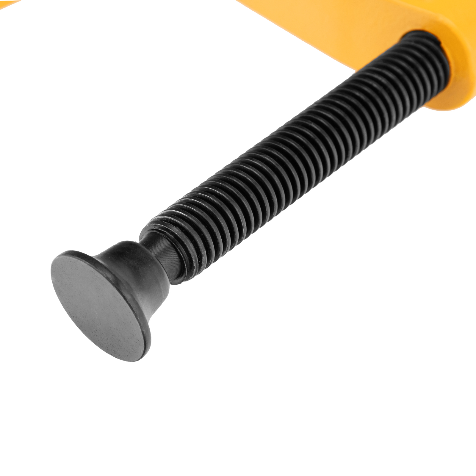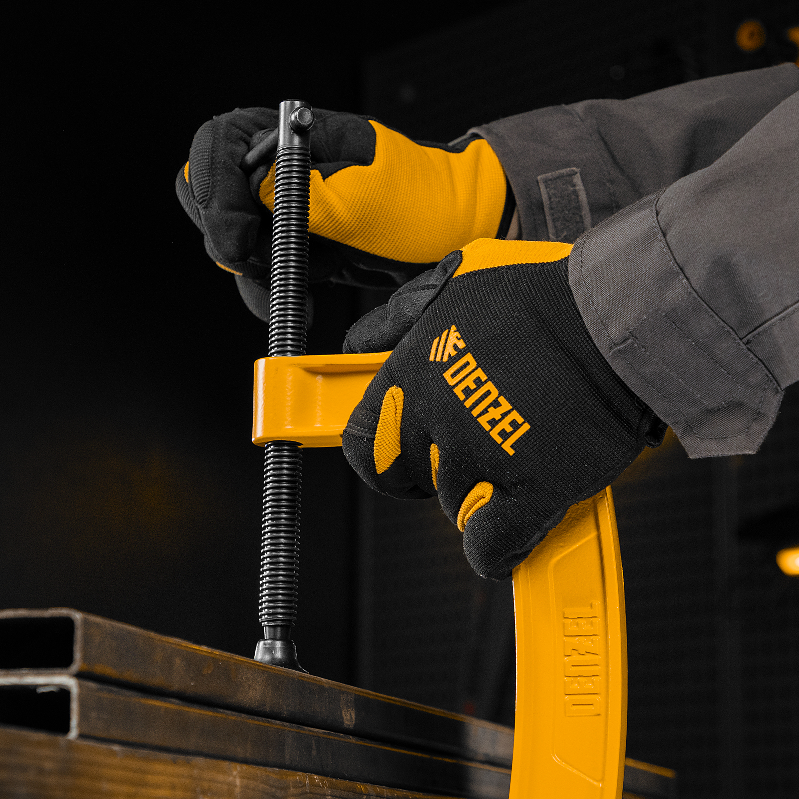 G-образная струбцина Denzel 20645 с максимальной шириной зажима 150 мм используется для фиксации заготовок или закрепления их на верстаке, станке или между собой. Позволяет склеивать детали, а также сверлить их, шлифовать, опиливать и проводить другие работы. Может использоваться во время выполнения сварочных работ. Винт с трапециевидной резьбой обеспечивает надежную фиксацию предметов. Струбцина применяется в слесарном и столярном деле, будет полезна также домашнем хозяйстве.