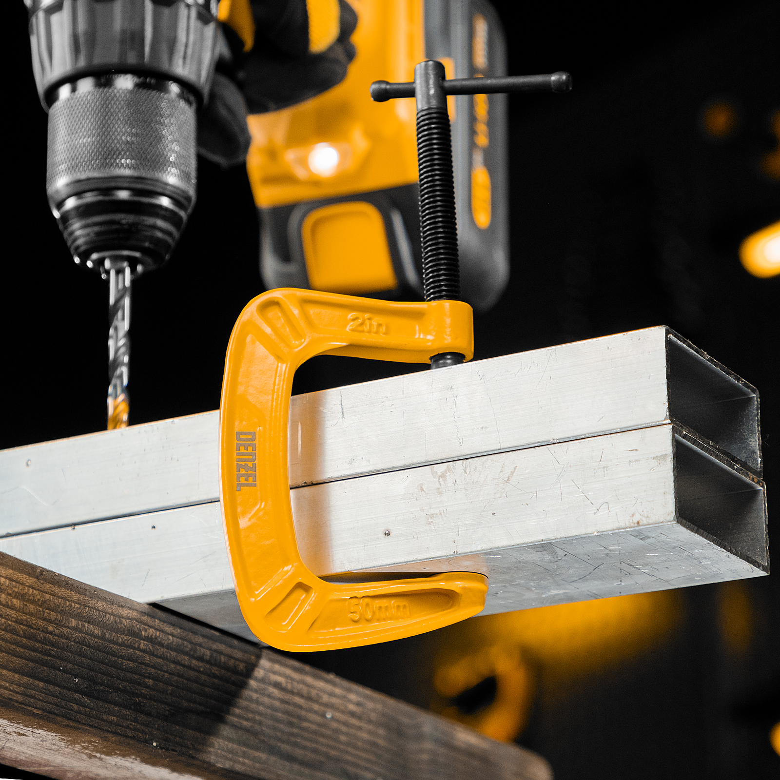 G-образная струбцина Denzel 20641 с максимальной шириной зажима 50 мм используется для фиксации заготовок или закрепления их на верстаке, станке или между собой. Позволяет склеивать детали, а также сверлить их, шлифовать, опиливать и проводить другие работы. Может использоваться во время выполнения сварочных работ. Винт с трапециевидной резьбой обеспечивает надежную фиксацию предметов. Струбцина применяется в слесарном и столярном деле, будет полезна также домашнем хозяйстве.