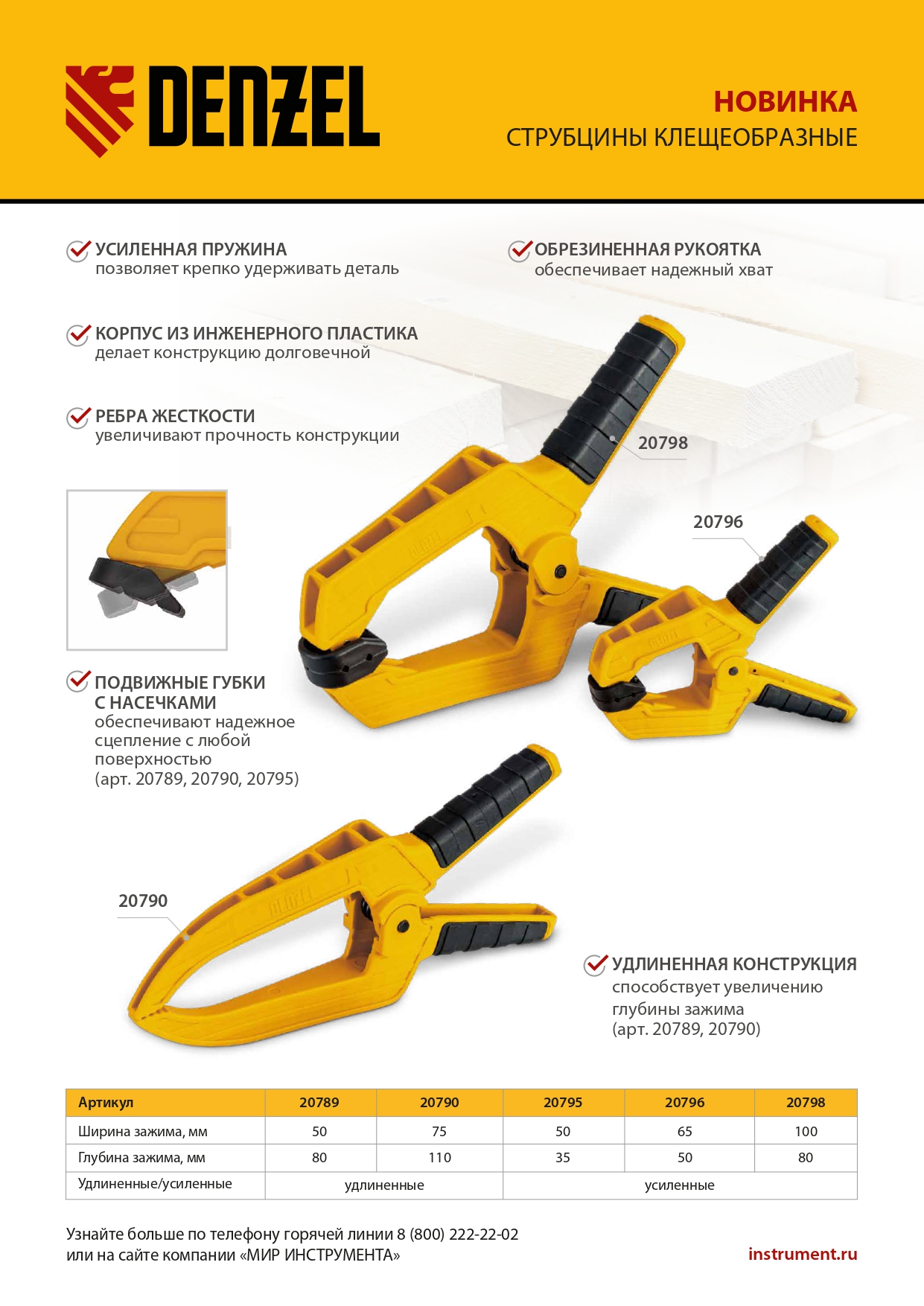 Струбцина клещеобразная, удлиненная 75 х 110 мм двухкомпонентные рукоятки Denzel в Екатеринбурге