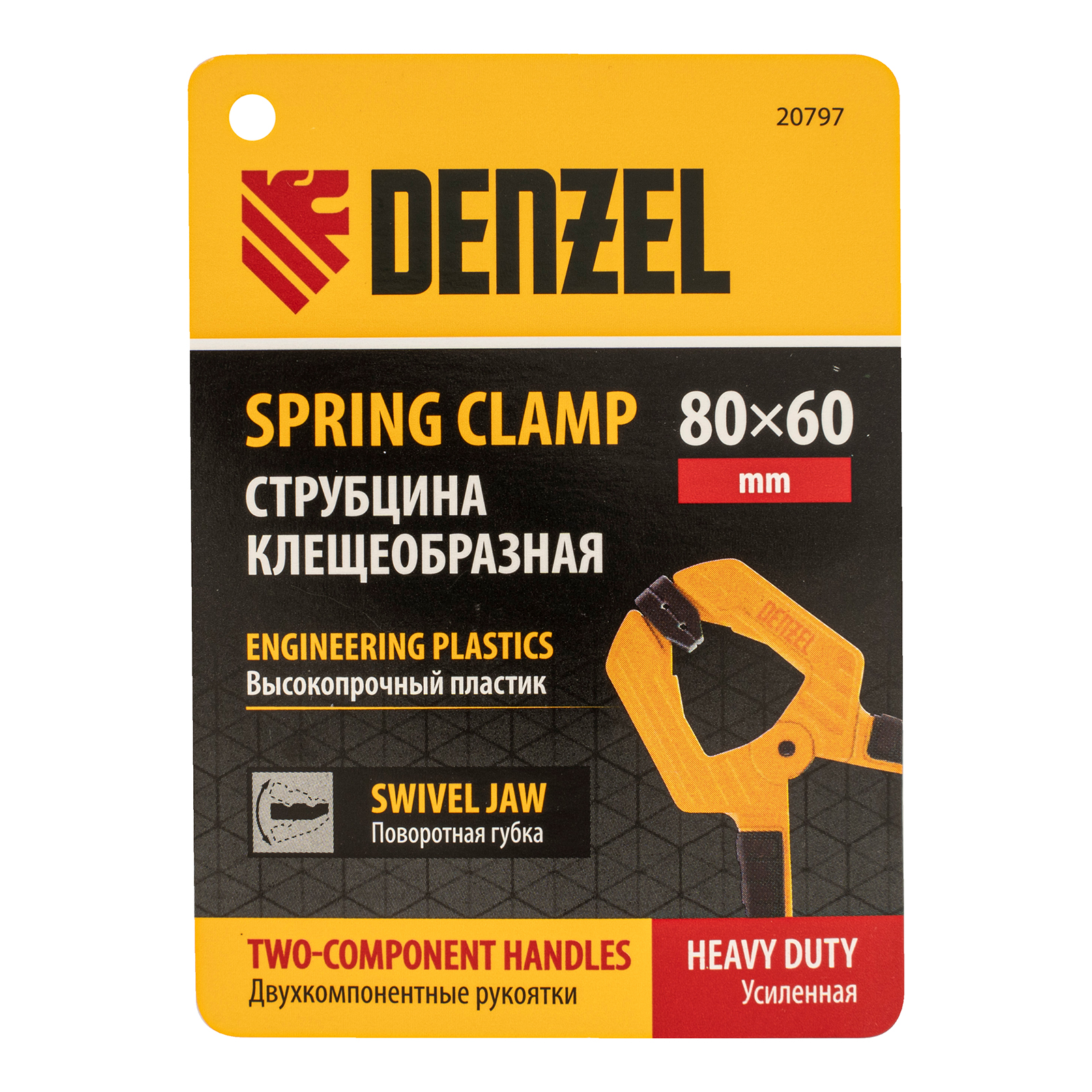 Струбцина клещеобразная, усиленная 80 х 60 мм, двухкомпонентные рукоятки Denzel в Екатеринбурге