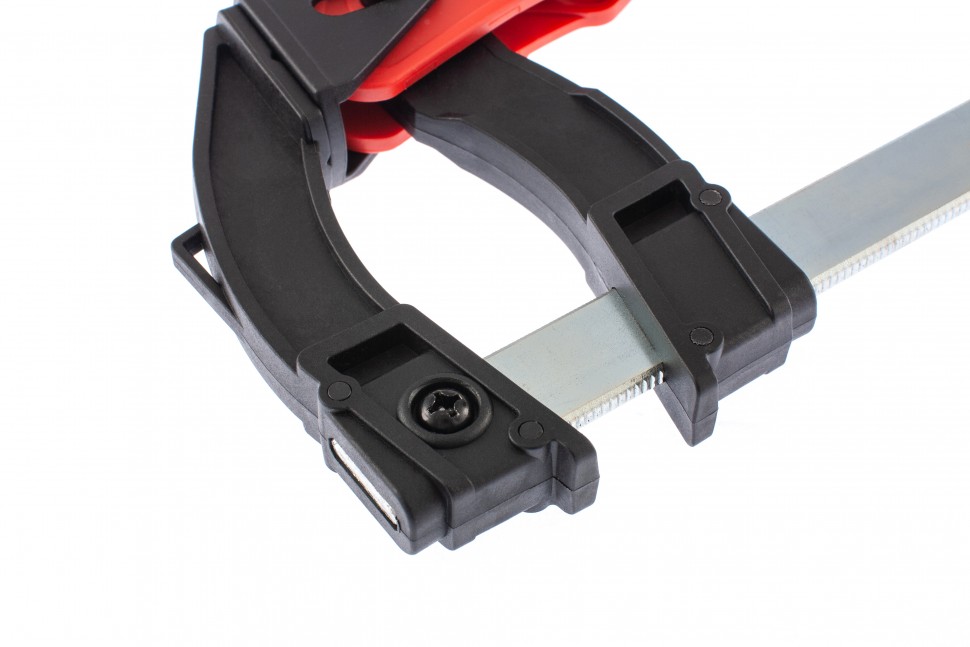 Реечная быстрозажимная струбцина Matrix 20734, 100 х 90 х 195 мм, штанга 5 х 20 мм, с пластиковым корпусом и рычажным храповым механизмом, используется для зажимания и удержания заготовок с целью их скрепления или последующей обработки. Рычажно-храповый механизм позволяет надежно зафиксировать деталь, пошагово перемещая подвижную губку вдоль штанги. Струбцина пригодится при выполнении столярных работ в мастерской, дома или на даче.