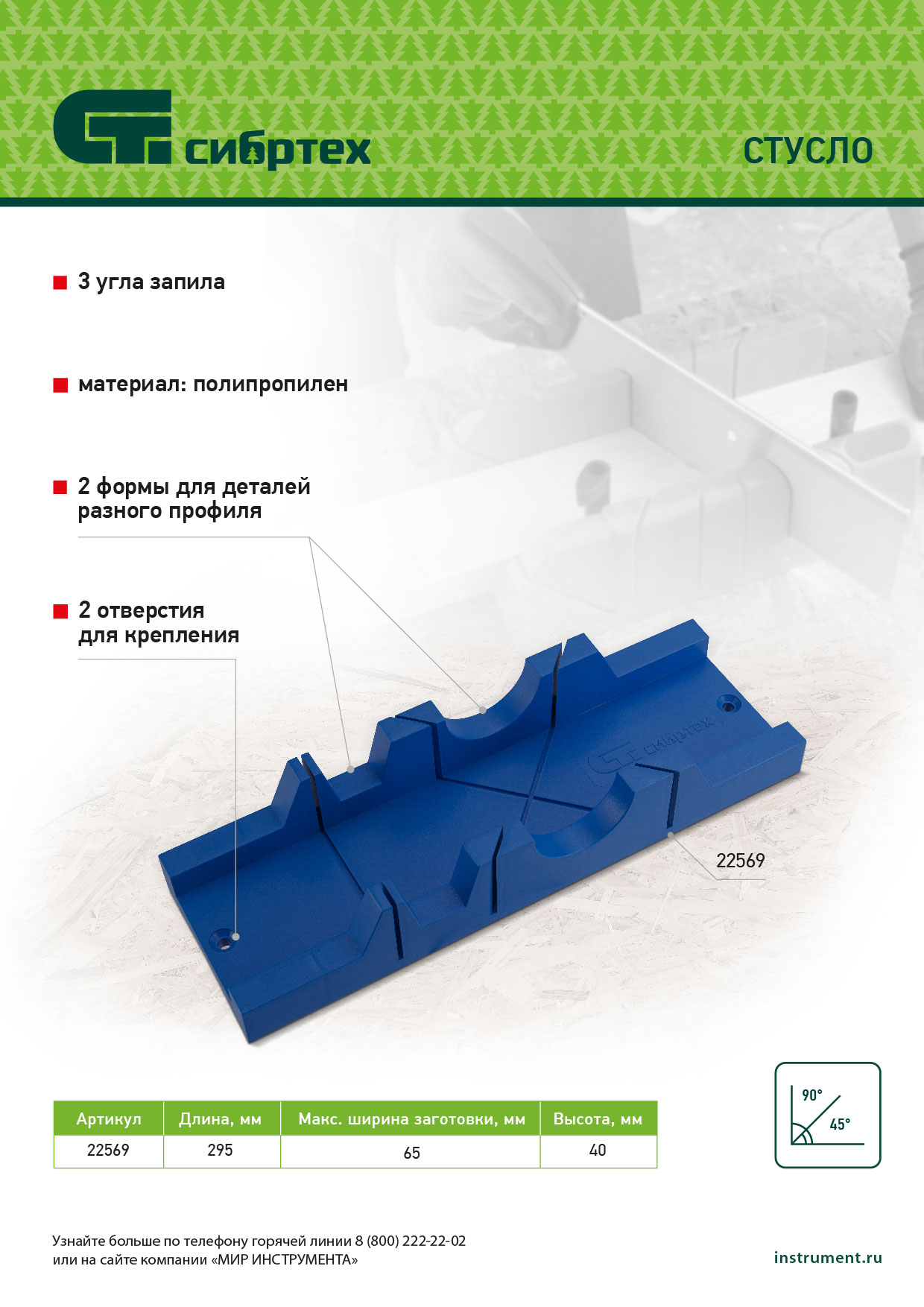 Стусло, 295 х 65 мм, пластиковое, 3 угла для запила Сибртех в Екатеринбурге