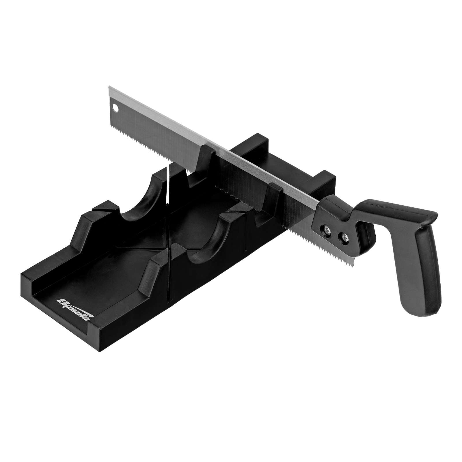 Пластиковое стусло Sparta 225307, 300 х 65 мм, в комплекте с пилой 300 мм, пригодится для резки плинтусов, вагонки, ламината и других материалов шириной до 65 мм и толщиной до 40 мм. Оно позволяет установить детали для их последующего распила под углом 45 и 90 градусов.