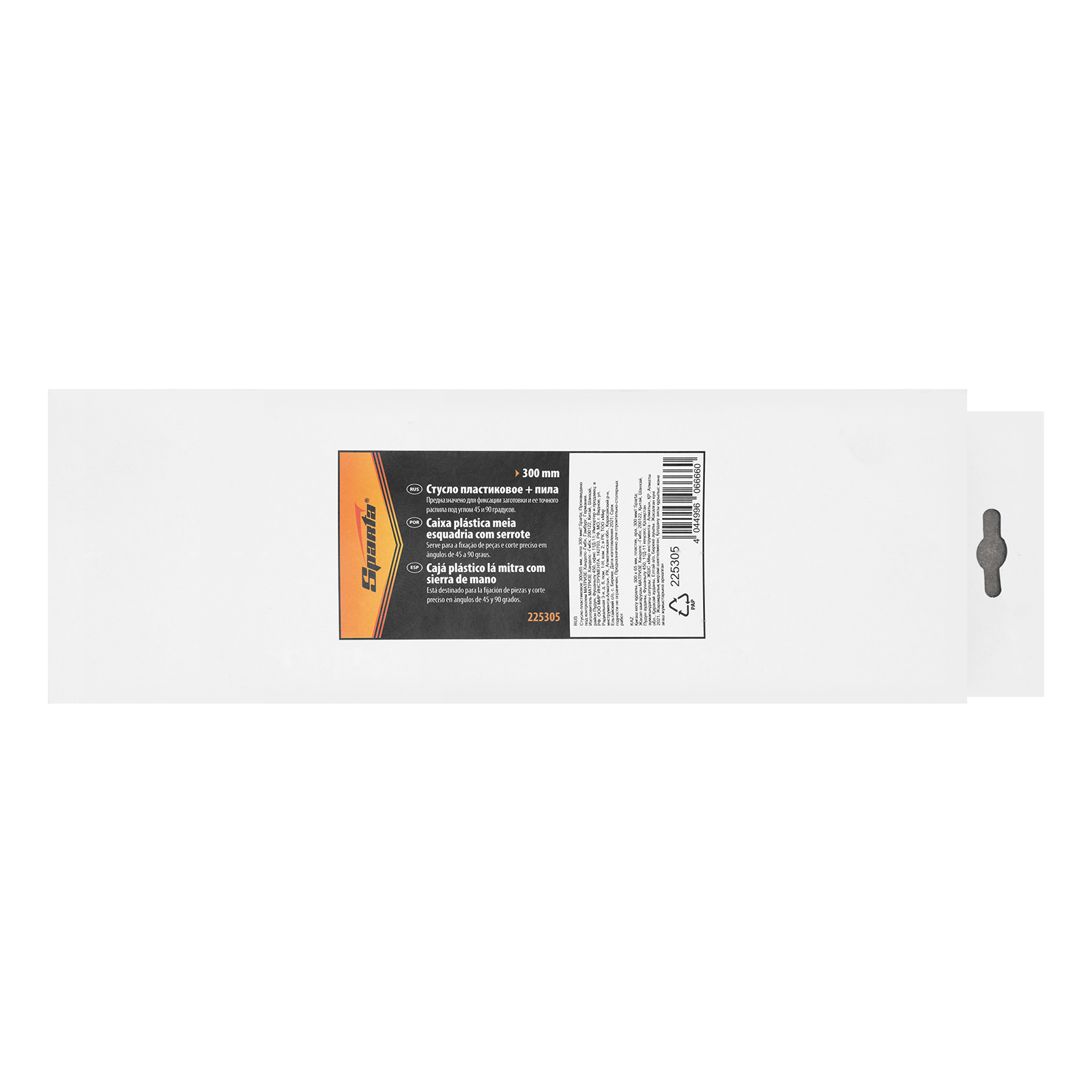 Пластиковое стусло Sparta 225305, 300 х 65 мм, в комплекте с пилой 300 мм, пригодится для резки плинтусов, вагонки, ламината и других материалов шириной до 65 мм и толщиной до 40 мм. Оно позволяет установить детали для их последующего распила под углом 45 и 90 градусов.