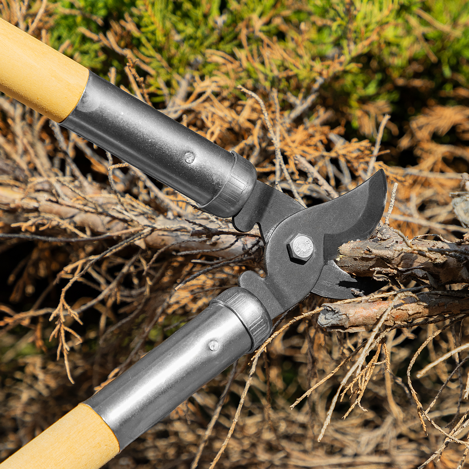 Сучкорез прямого реза Горизонт 60815 длиной 500 мм, с длинными деревянными рукоятками, — инструмент для работы на загородном участке. Успешно справляется с живыми ветками диаметром до 25 мм. Сучкорез облегчает уход за садом и огородом и будет полезен на дачном участке.