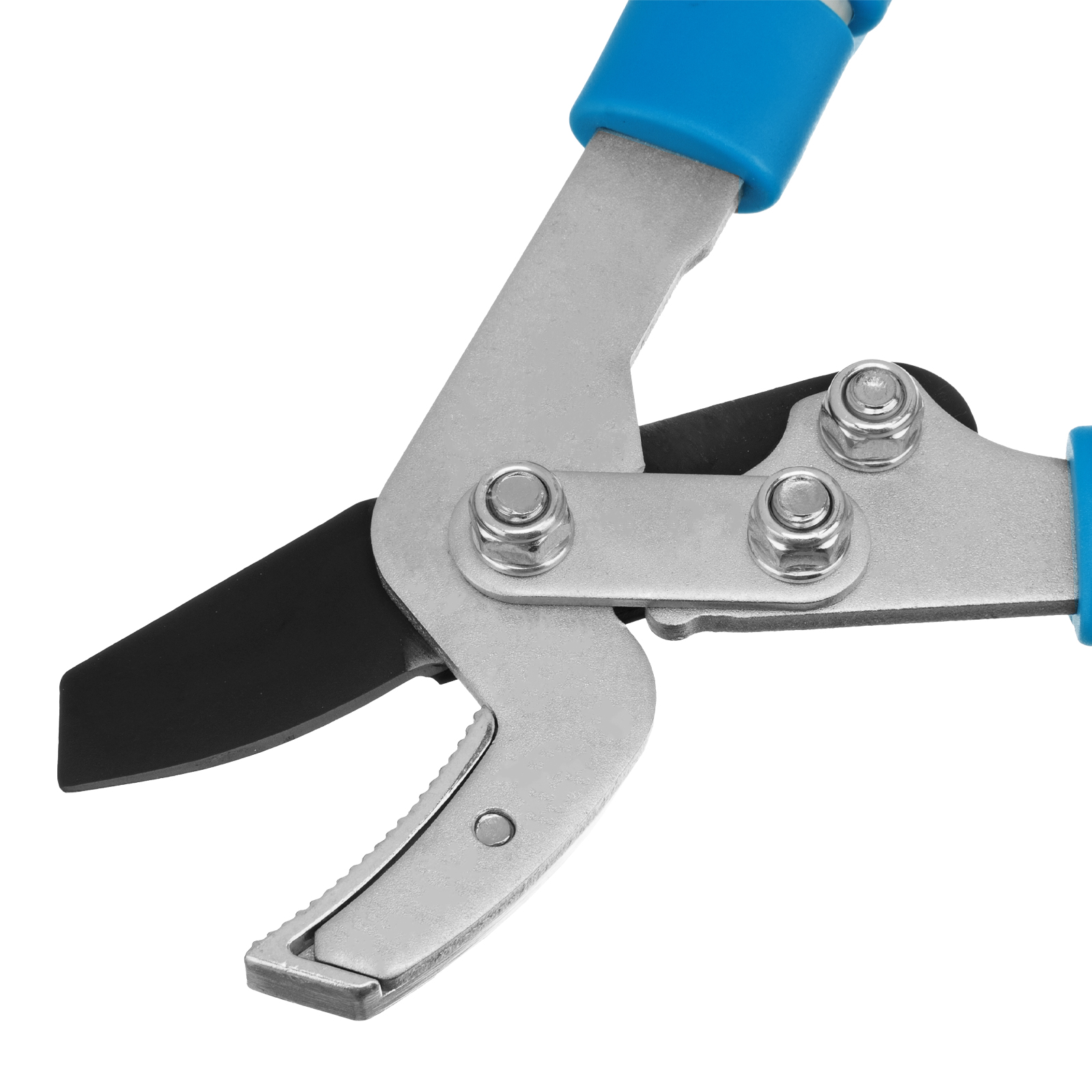 - Удобная эксплуатация — ребристая поверхность стальной наковальни облегчает захват и фиксацию ветки для обрезки.