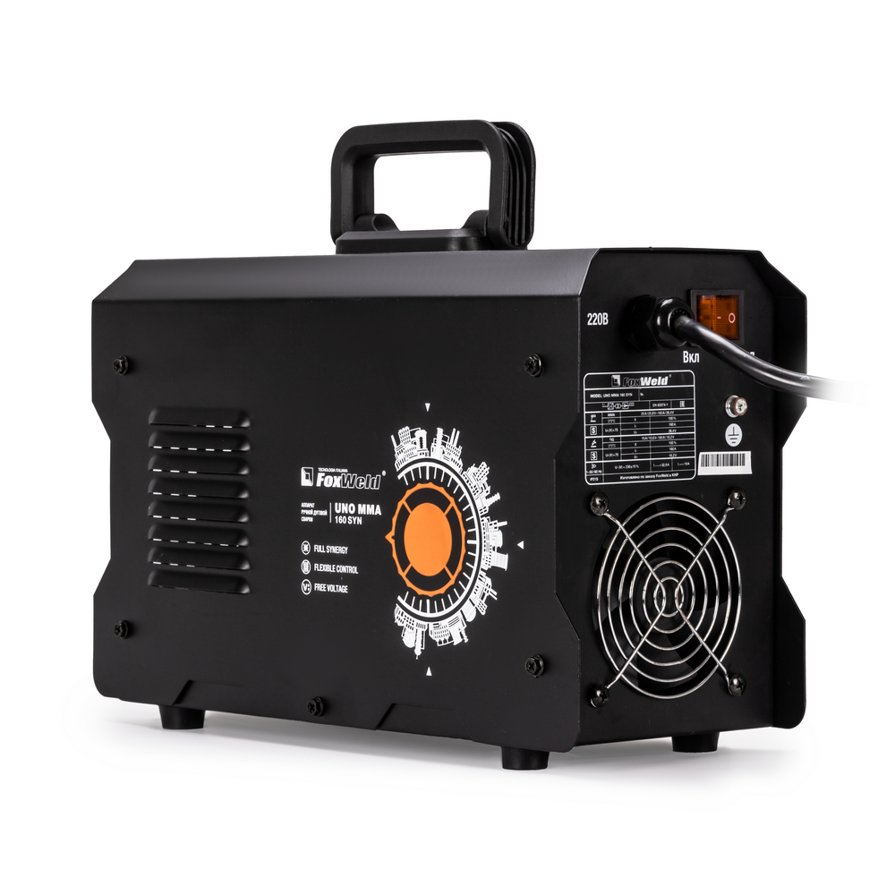 Сварочный аппарат UNO MMA 160 SYN c синергетическим управлением предназначен для ручной дуговой сварки (MMA) любыми типами электродов, а также для сварки вольфрамовыми электродами в среде инертного газа аргон (TIG LIFT). В модели есть полноценная синергетика, которая рекомендует соотношение параметра силы тока сварки к толщине свариваемого сплава металла. Для облегчения процесса сварки в режиме ММА и получения более качественного сварного соединения аппарат имеет регулируемые функции Нot Start (горячий старт) и Arc Force (форсаж дуги), а также AntiSticking (антиприваривание) с возможностью отключения. Функция VRD повышает безопасность и исключает риск поражения сварщика электрическим током. Процесс сварки становится более безопасным в замкнутых пространствах и при сварке в условиях повышенной влажности. Режим TIG LIFT позволяет проводить аргонодуговую сварку на постоянном токе изделий из черной и нержавеющей стали. Данный вид сварки характеризуется отсутствием брызг и более презентабельным внешним видом сварного шва. Для проведения аргонодуговой сварки необходимо дополнительно приобрести горелку с вентилем и баллон с газом аргон.РАСШИРЕННЫЙ СИНЕРГЕТИЧЕСКИЙ РЕЖИМ УПРАВЛЕНИЯ: Синергетическое управление дает возможность модифицировать все сварочные параметры, осуществляя регулировку лишь одного из них. Наличие синергетического режима управления позволяет легко и быстро настроить аппарат под любую задачу. Преимущества синергетики: простота в настройке даже неквалифицированным персоналом, быстрая установка сварочных параметров, гарантированное получение качественного сварного соединения. Синергетику можно отключить для работы в ручном режиме.РАБОТА БЕЗ ОСТАНОВКИ: Параметр ПВ 100% на максимальном токе при КПД 85% обеспечивает бесперебойную устойчивую работу сварочного аппарата в течении всего рабочего дня. Это позволяет производить безостановочный сварочный процесс и выполнять работы, которые требуют больших временных затрат, что повышает скорость и производительность.РАБОТА ПРИ ПОНИЖЕННОМ НАПРЯЖЕНИИ: Аппарат работает от однофазной сети 220 В при перепадах напряжения от 140 до 270 В. Это даёт возможность производить сварочные работы в «плохих» сетях – на даче, в домашних условиях при пониженном или нестабильном напряжении.ИНФОРМАТИВНАЯ ПАНЕЛЬ УПРАВЛЕНИЯ: На лицевой панели рядом с клавишами управления расположен информативный цифровой экран, на котором отражены процессы и параметры сварки, установленные значения настроек. Задать параметры сварки можно при помощи двух кнопок и шаговой ручки регулировки. С помощью одной кнопки выбирается режим сварки: ручная дуговая покрытым электродом (MMA) или сварка неплавящемся вольфрамовым электродом (TIG LIFT). Вторая кнопка позволяет переключать параметры сварки, а при помощи плавного вращения ручки выставляются числовые значения.НЕБОЛЬШОЙ ВЕС: Небольшой вес и размеры сварочного аппарата плюс ручка на корпусе и ремень для переноски добавляют мобильности, компактности и идеально подходят для бытового и полупрофессионального использования.ПРЕИМУЩЕСТВА:Процесс поджига дуги сварки в среде Аргона вольфрамовым электродом происходит за счёт касанияПри условии работы от сети с некачественным электроснабжением, аппарат может хорошо работать с сетевым напряжением от 140 до 270 вольт, процесс сварки п