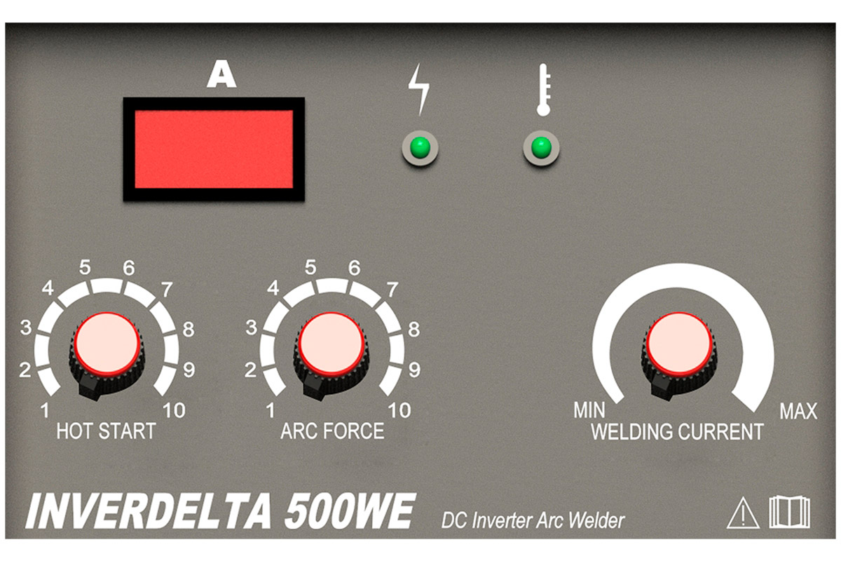 Промышленный аппарат для ручной дуговой сварки и наплавки штучным покрытым электродом (MMA). Расширенный набор настроек. Максимальный сварочный ток 500 А. Входное напряжение 380В.
