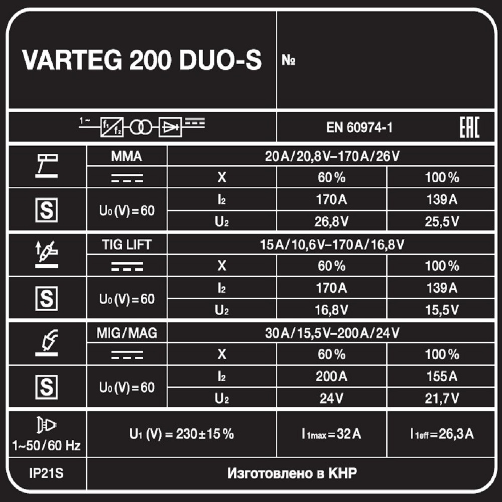 Сварочный полуавтомат VARTEG 200 DUO-S