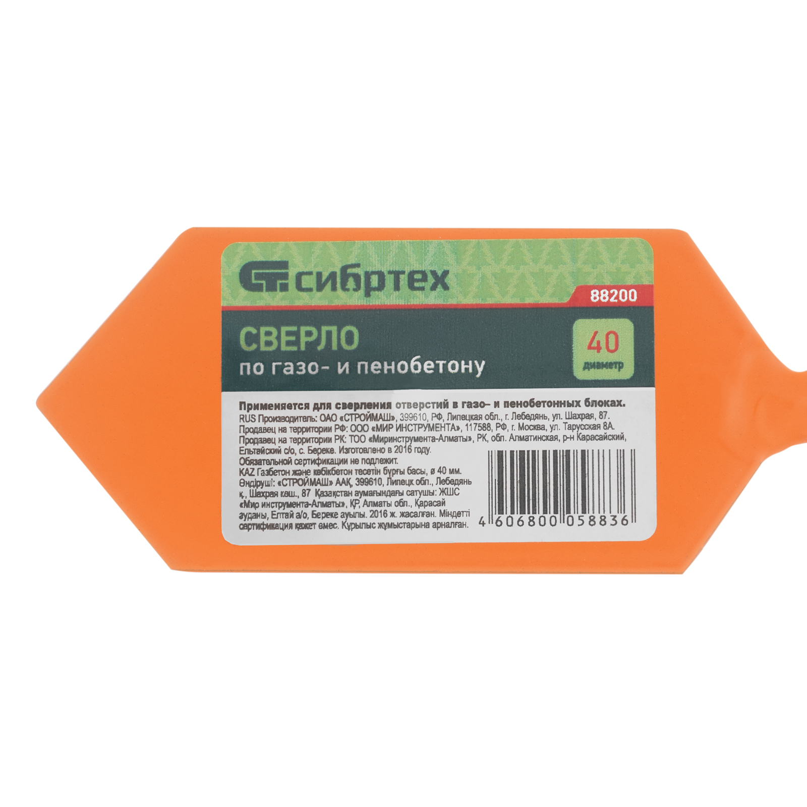 Сверло по газо и пенобетону, D 40 мм Сибртех в Екатеринбурге