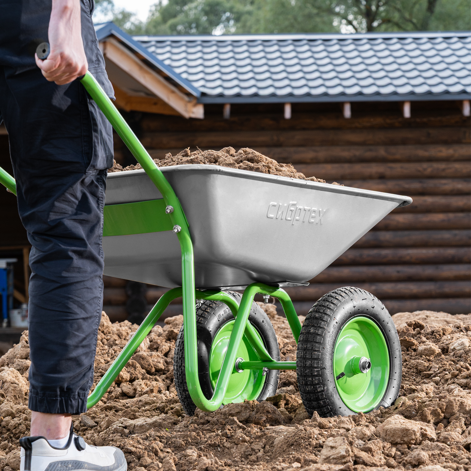 - Удобное перемещение даже по неровной поверхности — пневмоколеса с камерами и резиновыми шинами повышают плавность хода, каждое колесо оснащено 2 шариковыми подшипниками, облегчающими вращение и препятствующими износу.
