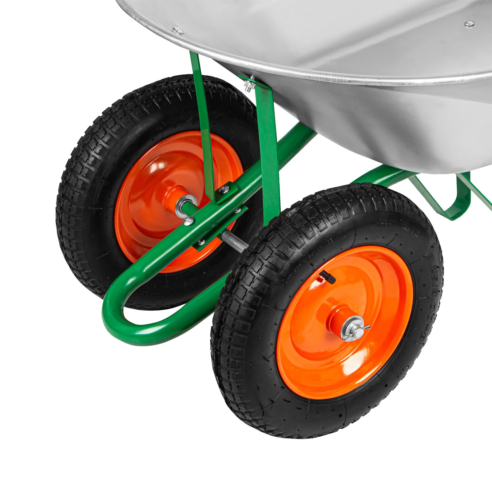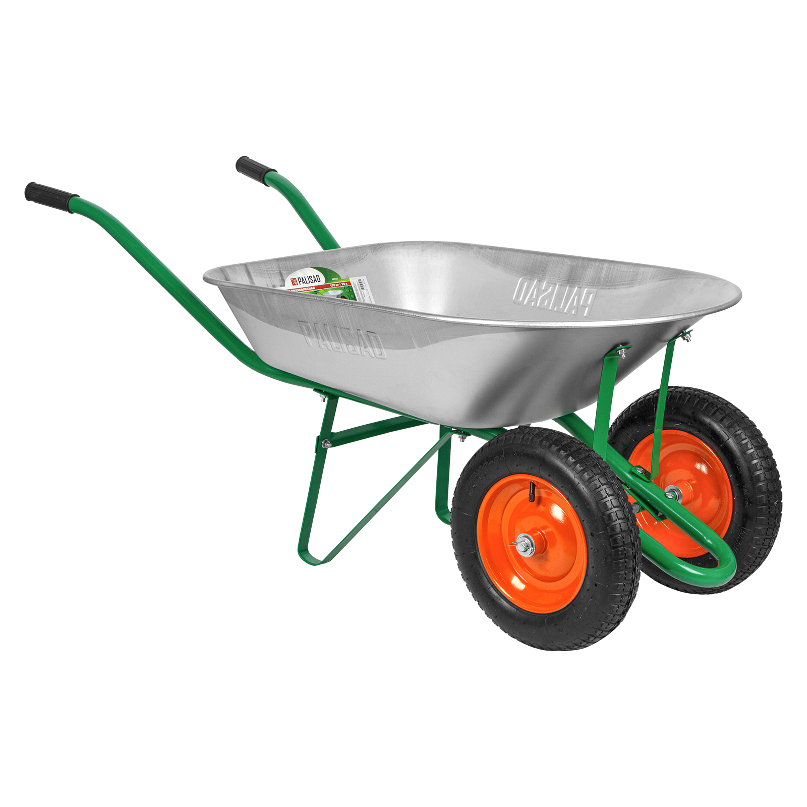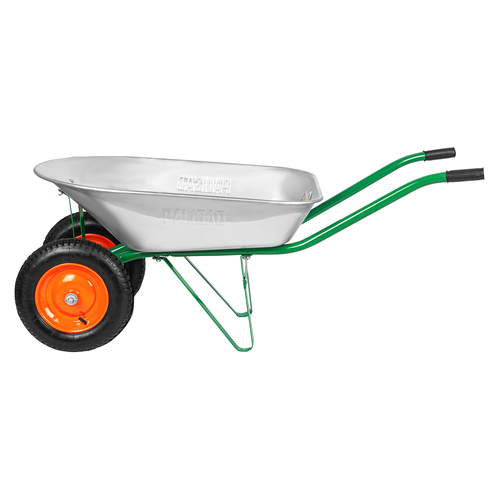 Садовая тачка Palisad 689225 с двумя колесами, грузоподъемностью 170 кг и с кузовом объемом 78 л, рассчитана на транспортировку садовых и легких строительных грузов. Избавляет от необходимости ручного перемещения тяжестей и позволяет снизить нагрузку на спину.