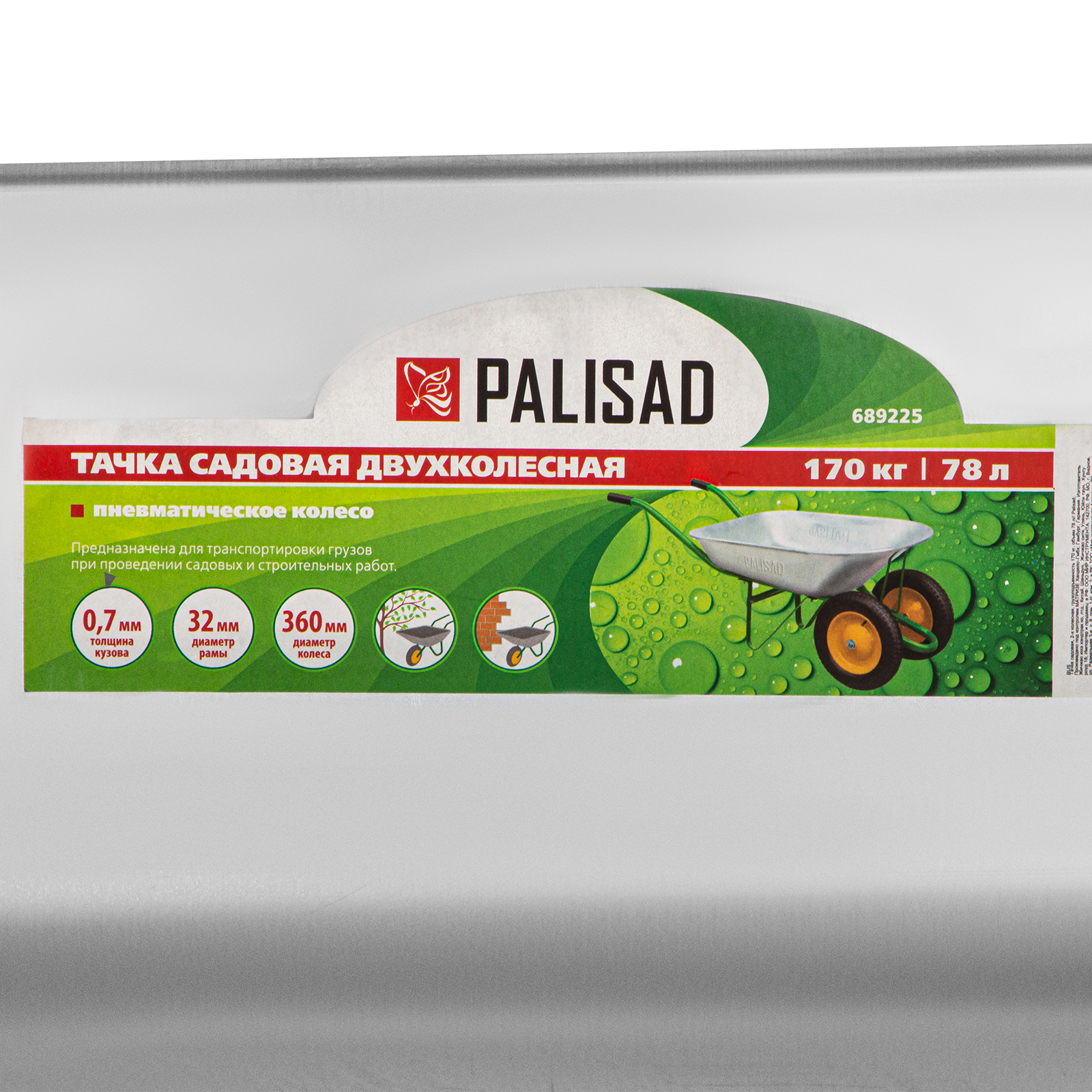 Тачка садовая, два колеса, грузоподъемность 170 кг, объем 78 л Palisad в Екатеринбурге