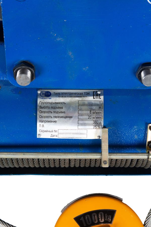 • Таль передвижная с уменьшенной строительной высотой 10т 12м 380В электрическая канатная TOR CDL PRO по ценам производителя в Екатеринбурге с доставкой по всей России
