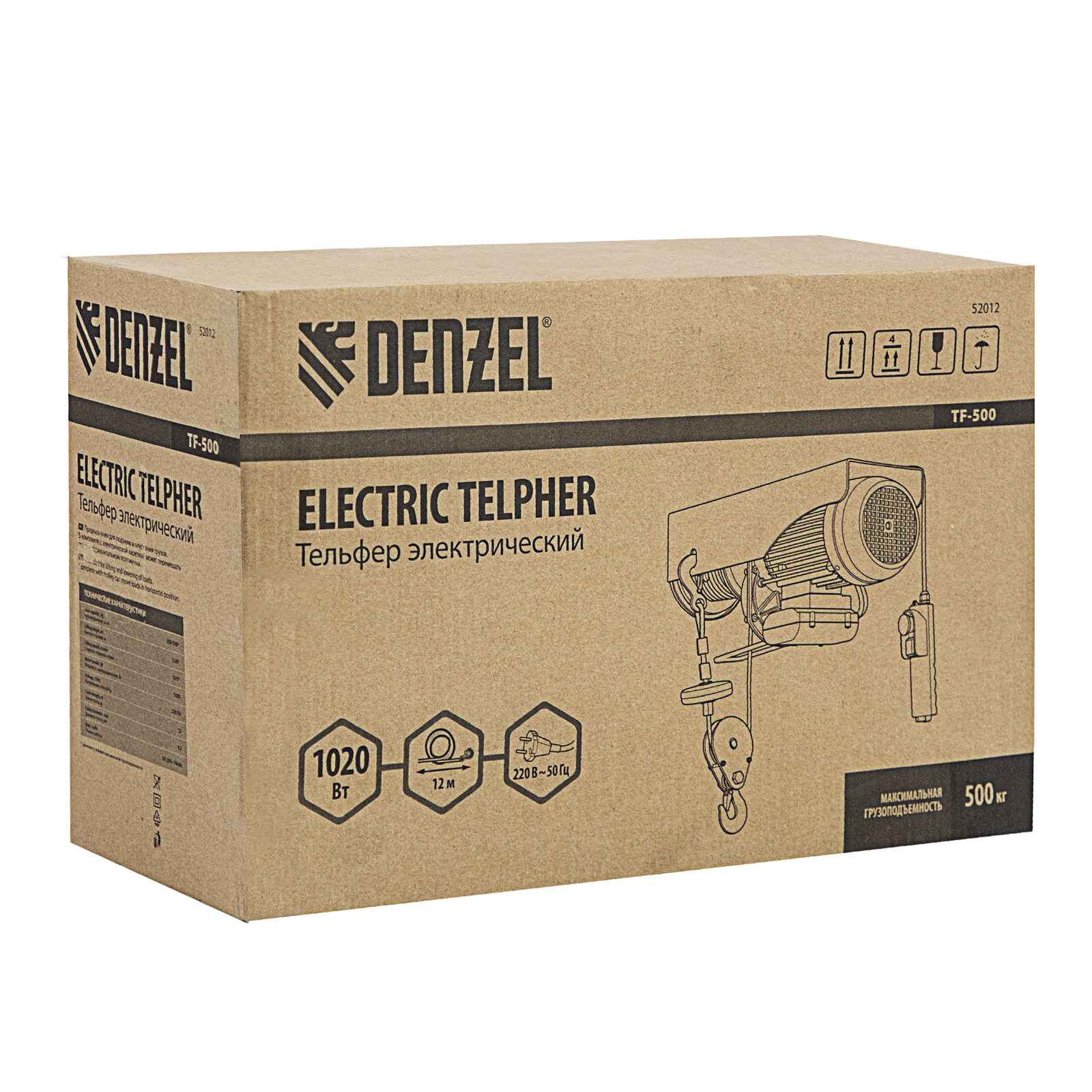 Тельфер электрический TF-500, 0.5 т, 1020 Вт, высота 12 м, 10 м/мин Denzel
