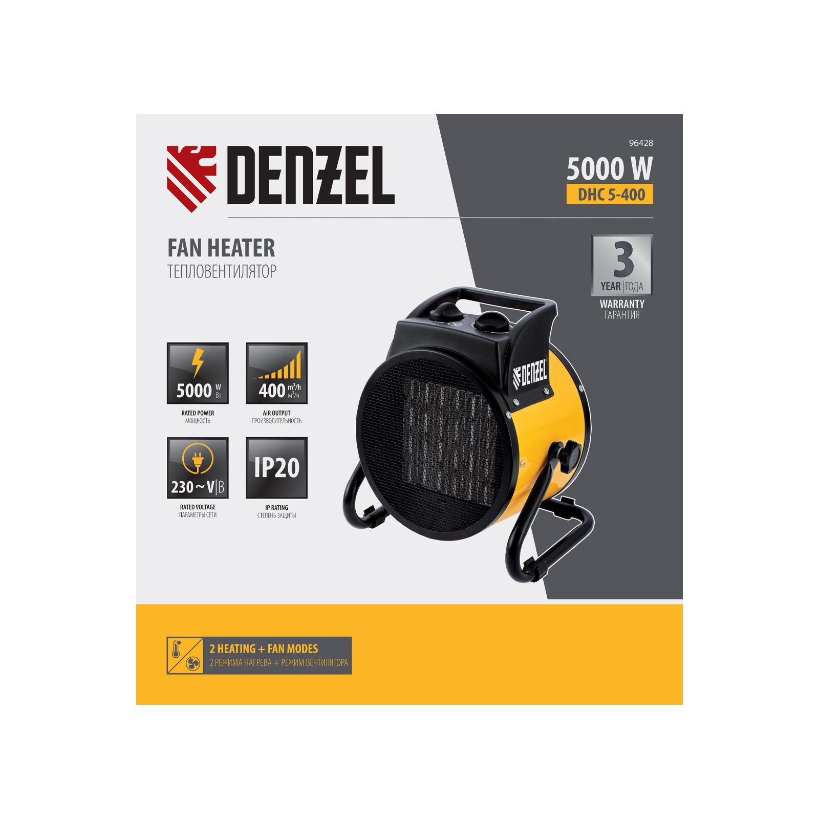 Тепловая пушка, керамический нагреватель (тепловентилятор) DHC 3-150, 230 В, 0.025/1.5/3 кВт Denzel