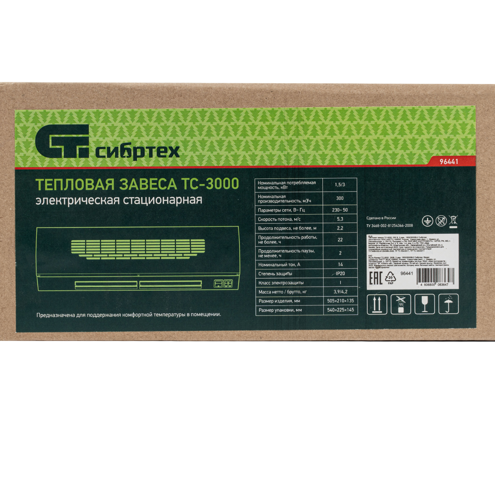 Тепловая завеса ТС-3000 (тепловентилятор) 230 В, 2 режима, 1500/3000 Вт Сибртех в Екатеринбурге