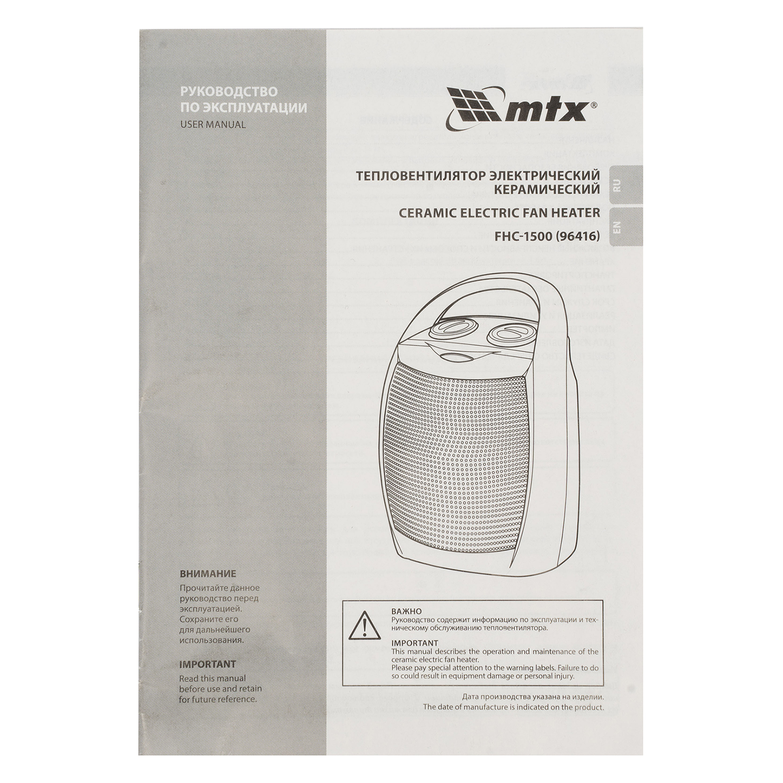 Тепловентилятор электр. керамический FHC-1500, 3 реж., вентилятор, нагрев 750/1500 Вт, MTX в Екатеринбурге