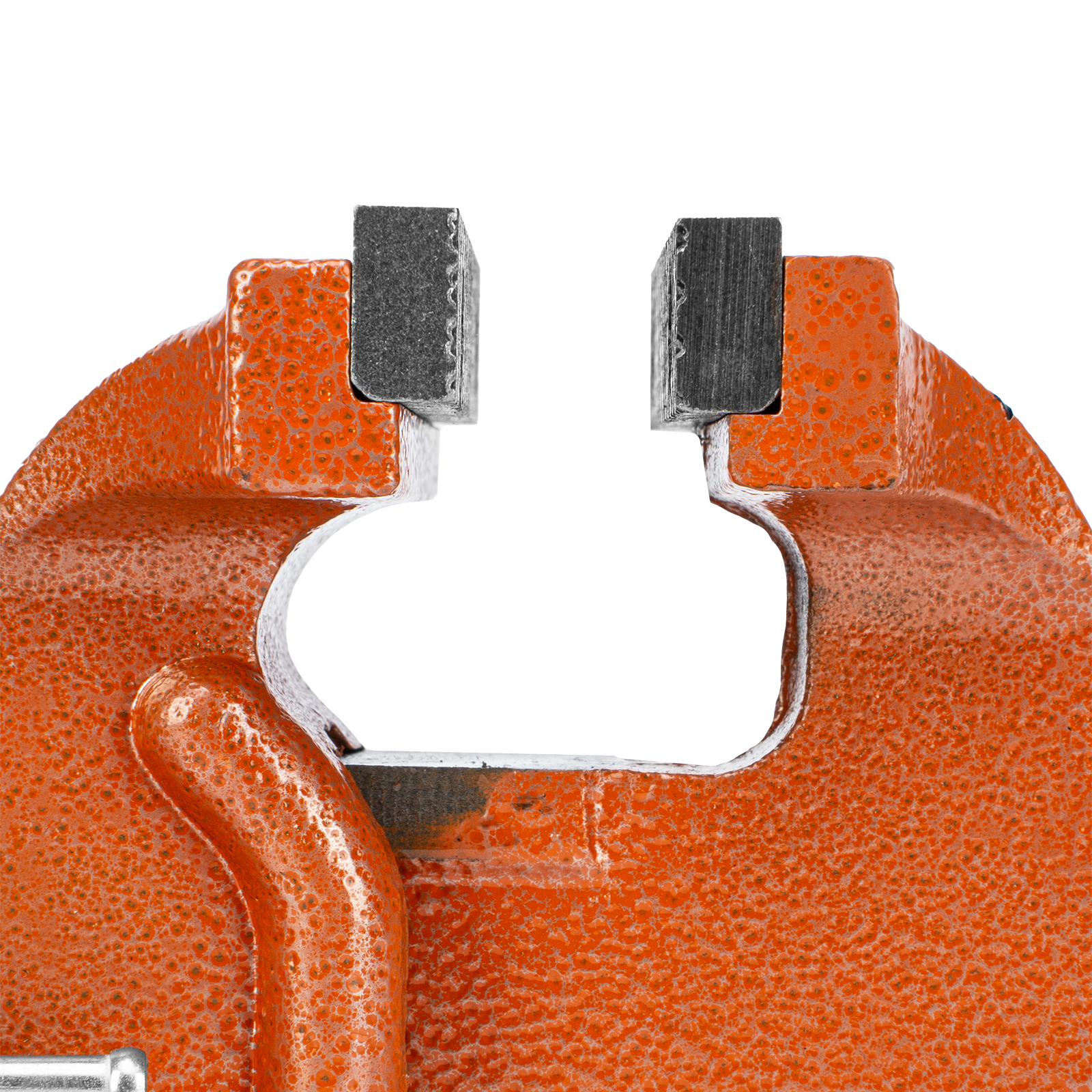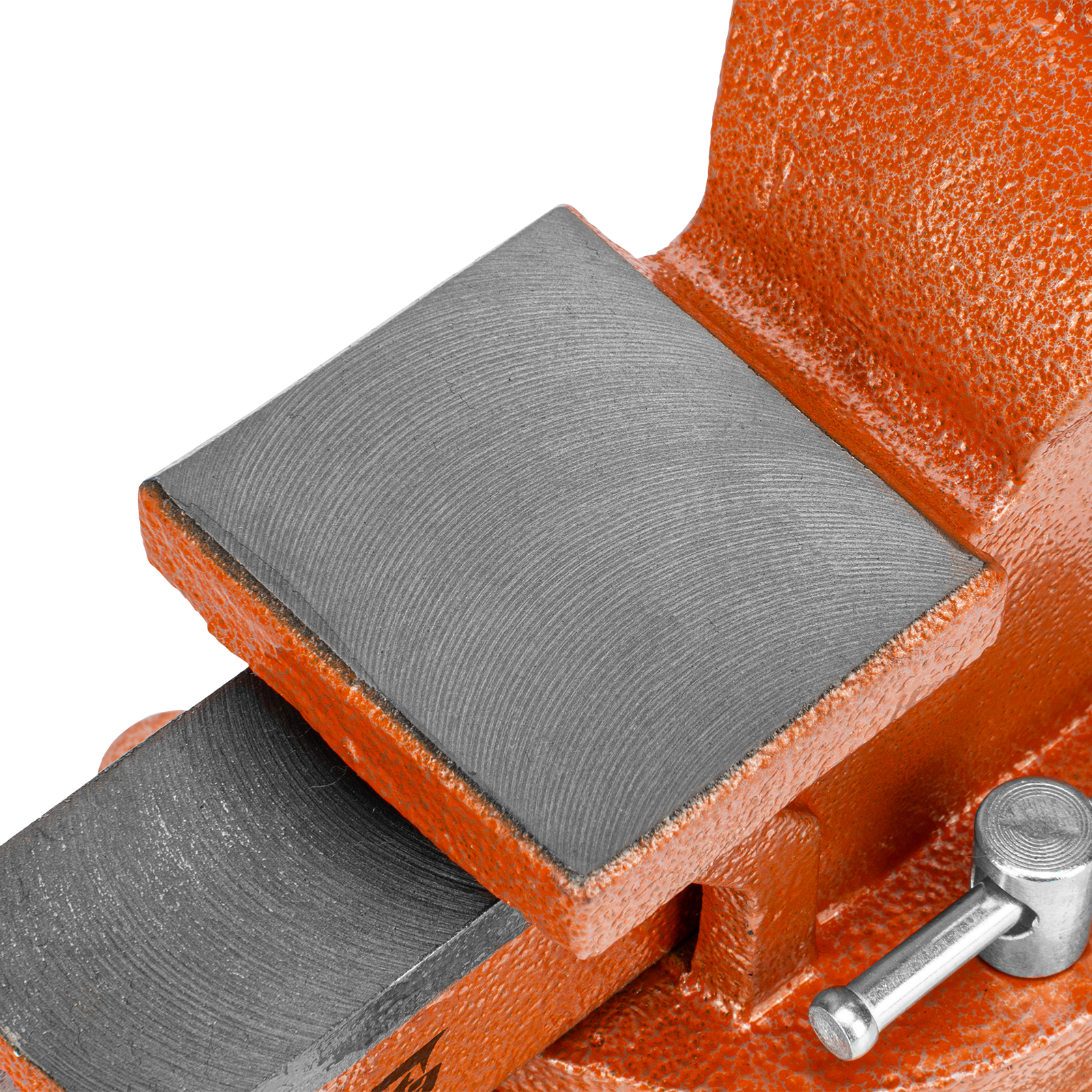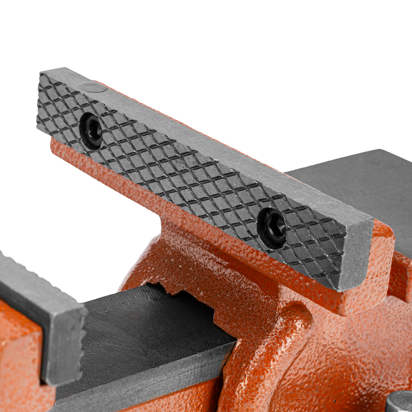 - Корпус тисков выполнен из чугуна, а губки — из стали, благодаря чему достигается высокая прочность инструмента.
