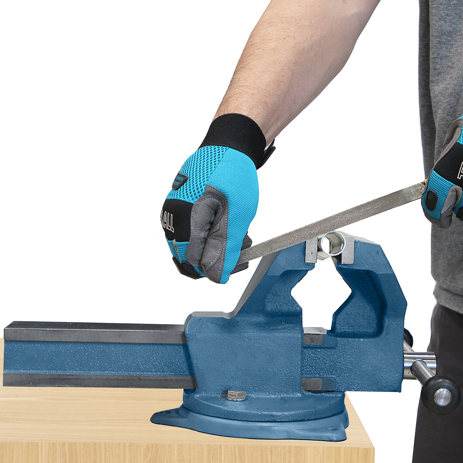 - Надежная фиксация изделий — тиски оснащены рельефными губками.