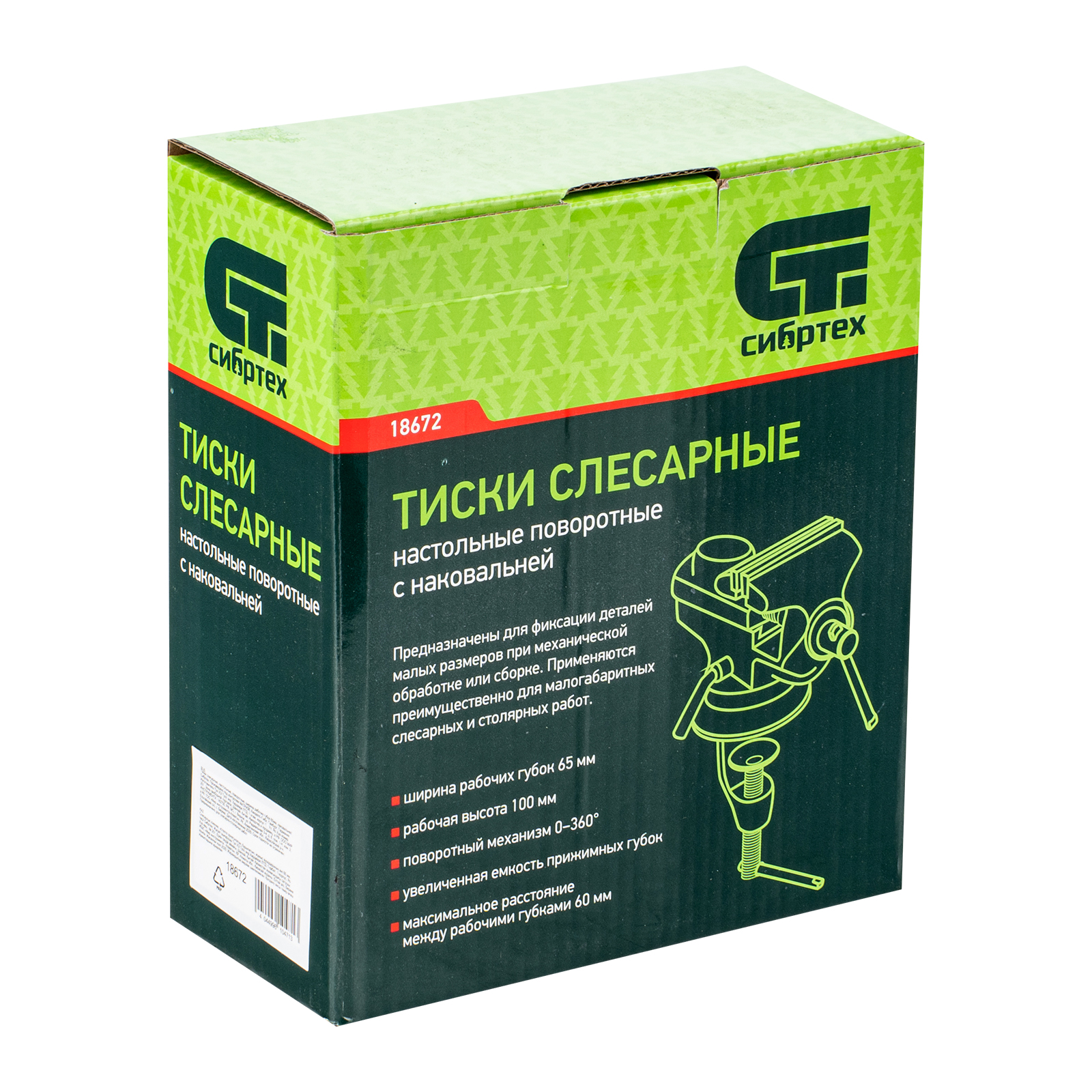 Тиски слесарные, настольные, поворотные, ширина рабочих губок 65 мм, наковальня Сибртех в Екатеринбурге