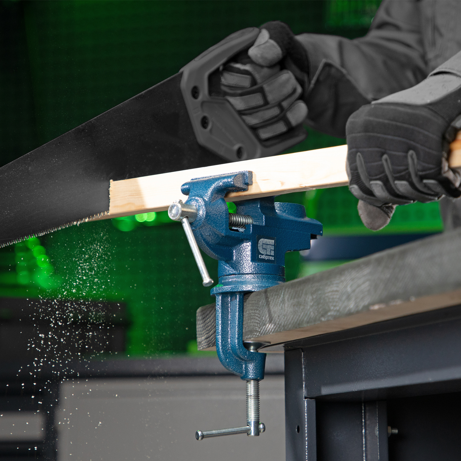 - Винтовой зажим позволяет быстро устанавливать и снимать тиски, поэтому их можно использовать на различных рабочих местах.
