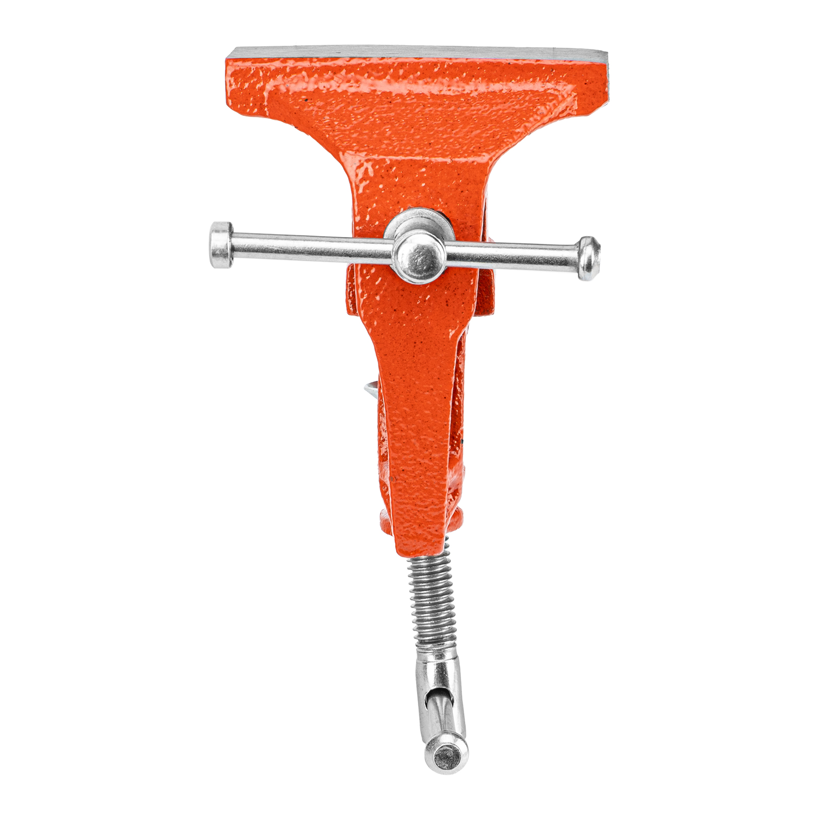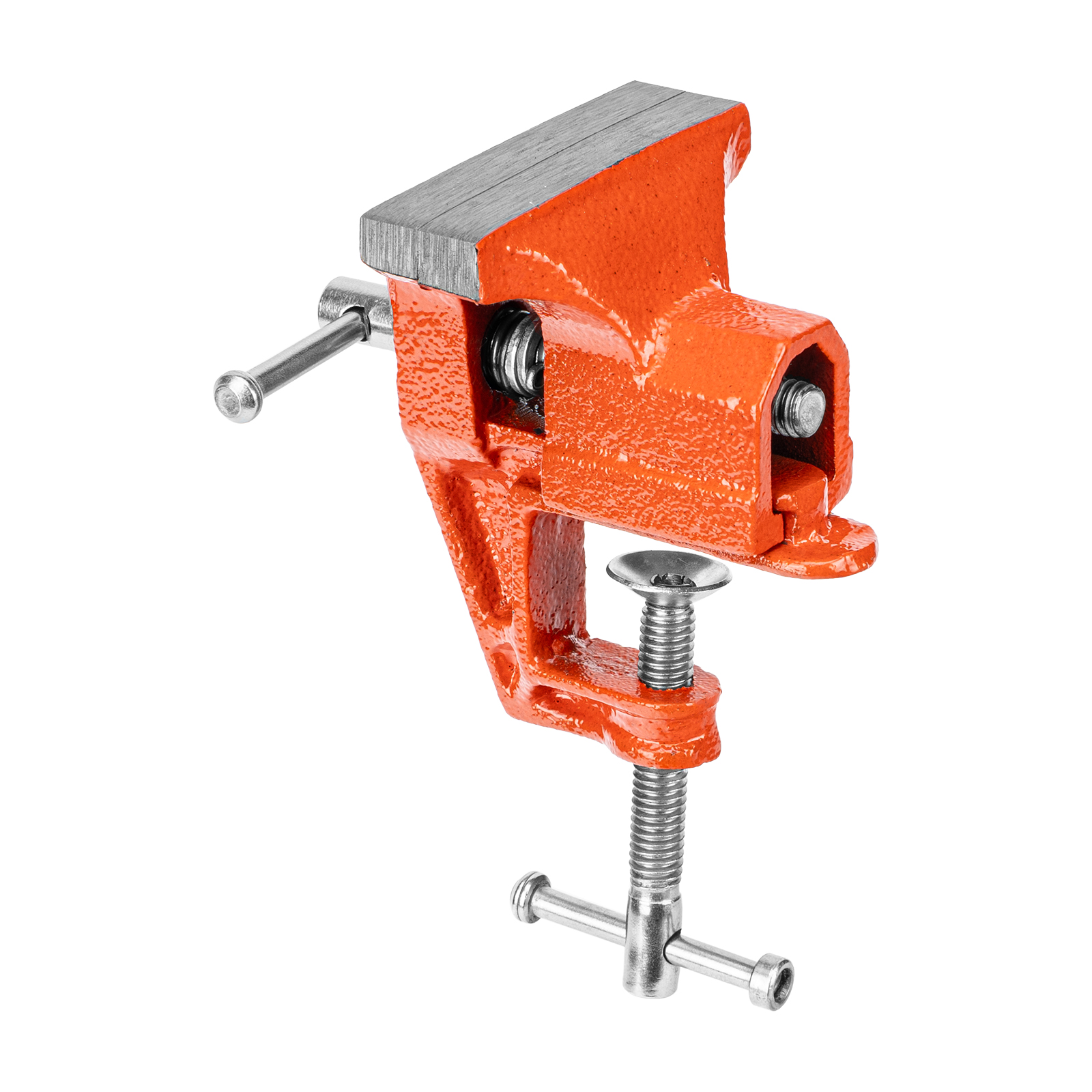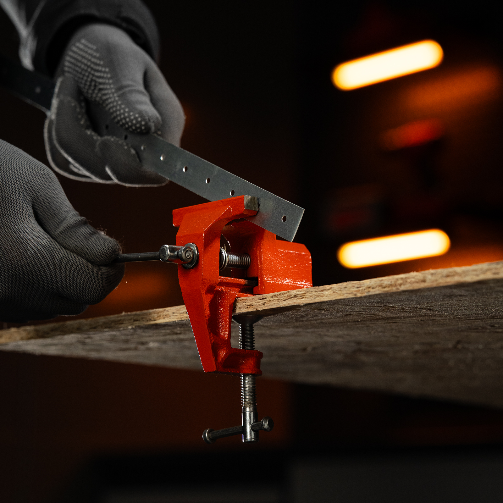 - Простое использование — винтовой зажимной механизм позволяет легко устанавливать и снимать тиски с рабочего стола.