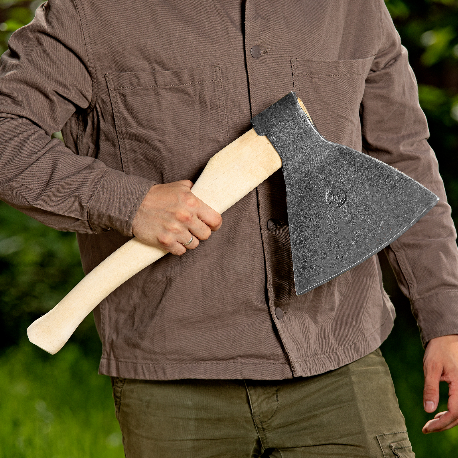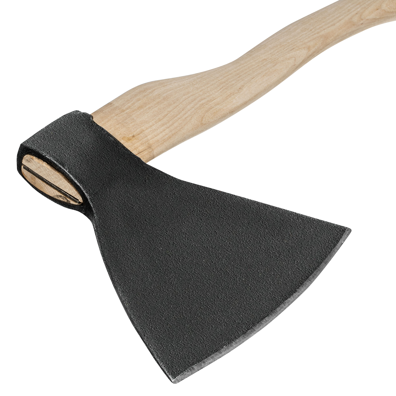 - Прочность и высокий ресурс — голова топора выполнена из качественной стали 60Г, лезвие закалено до необходимой твердости.