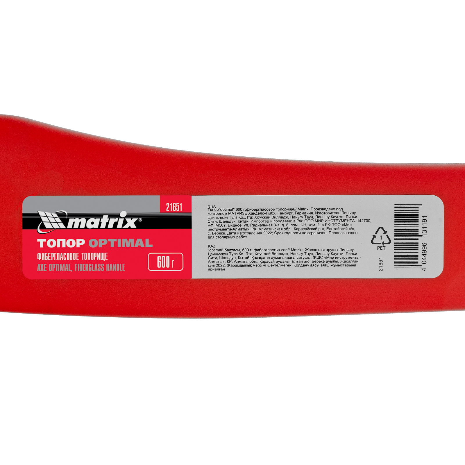 Топор optimal, 600 г, фибергласовое топорище Matrix в Екатеринбурге
