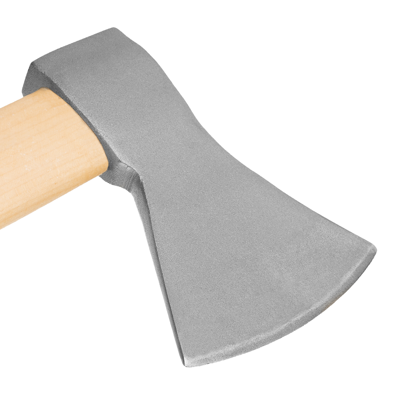 - Прочность и устойчивость к нагрузкам — голова топора выполнена из углеродистой стали 45, рабочие поверхности закалены до твердости 48-52 HRC