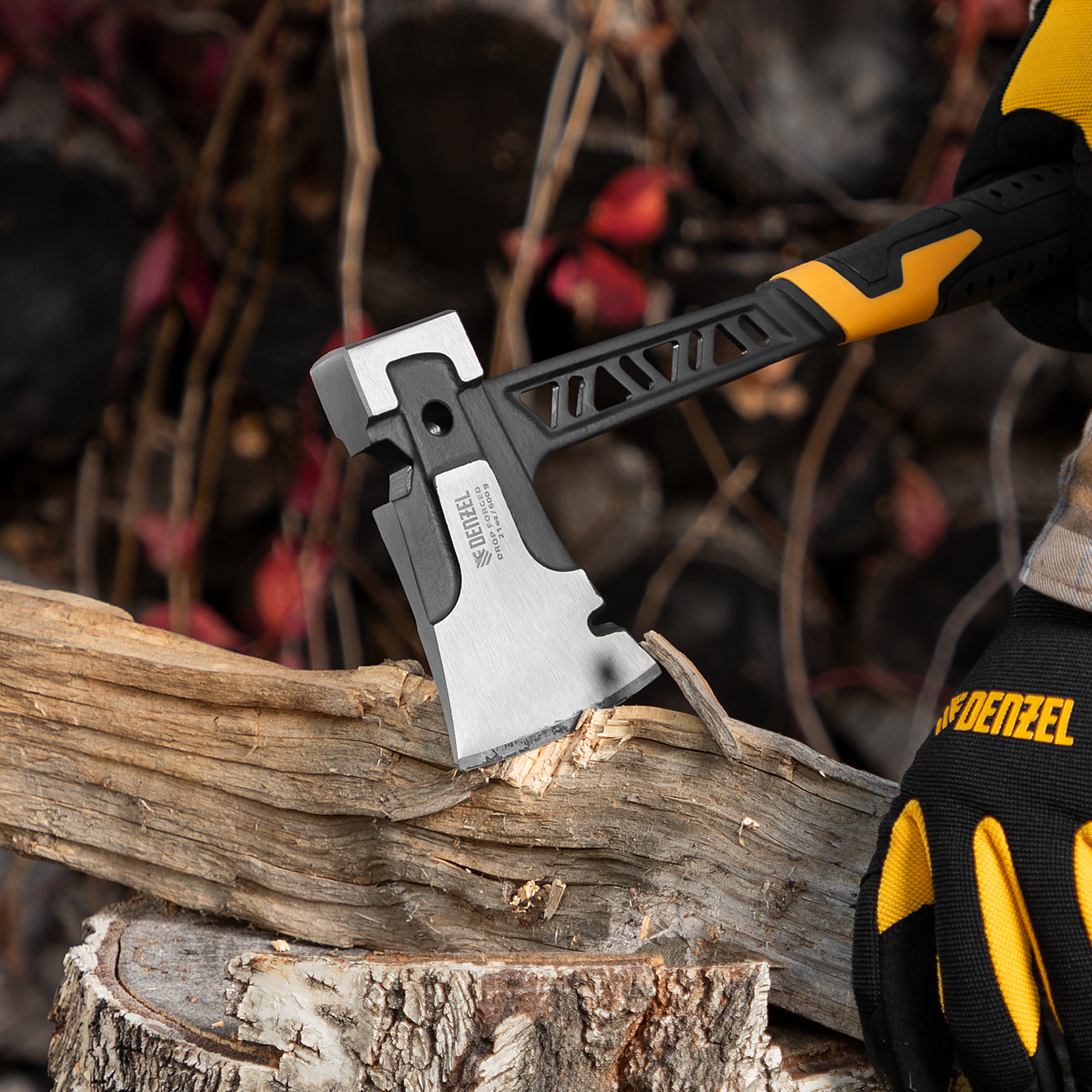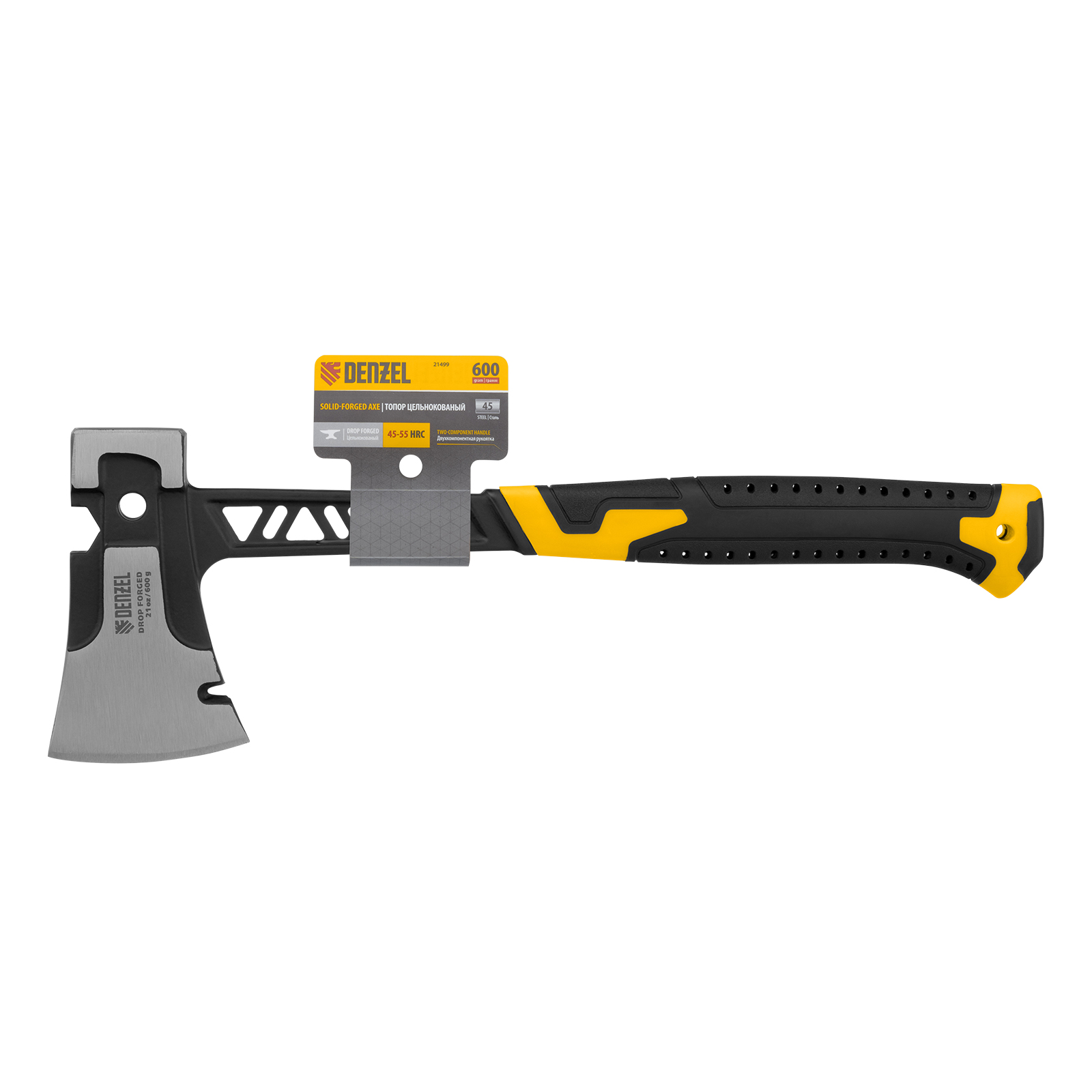 Топор цельнокованый 600 г, двухкомпонентная обрезиненная рукоятка Denzel в Екатеринбурге