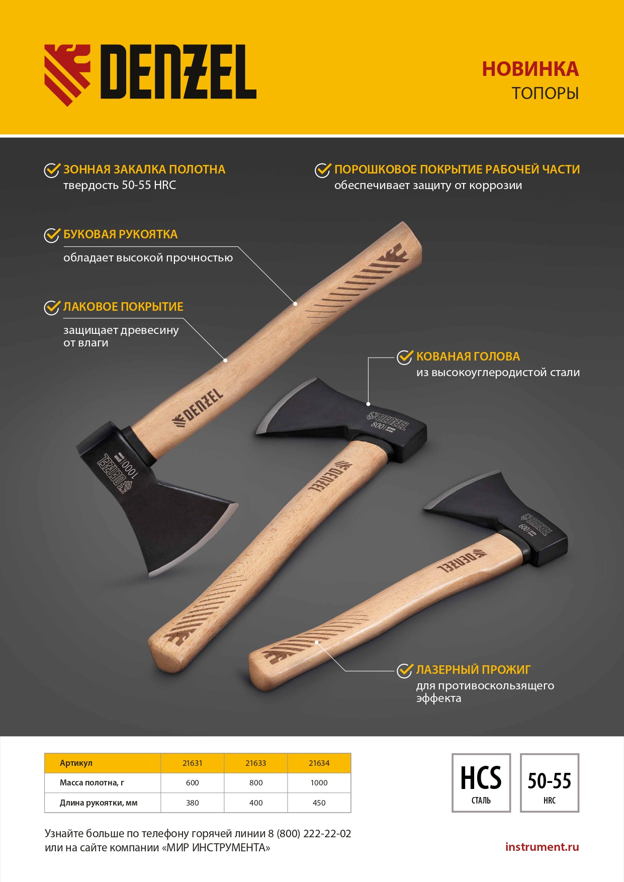 Топор, 600 г, кованый, буковое топорище Denzel в Екатеринбурге