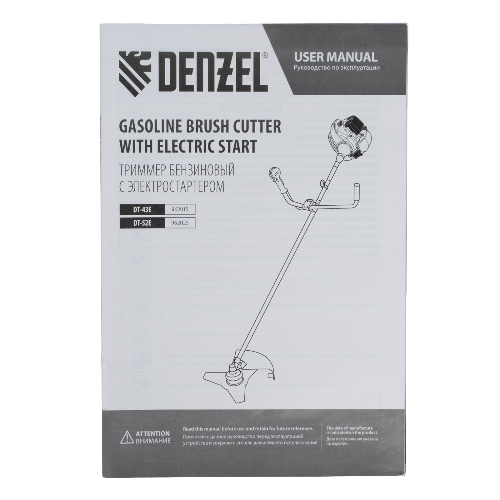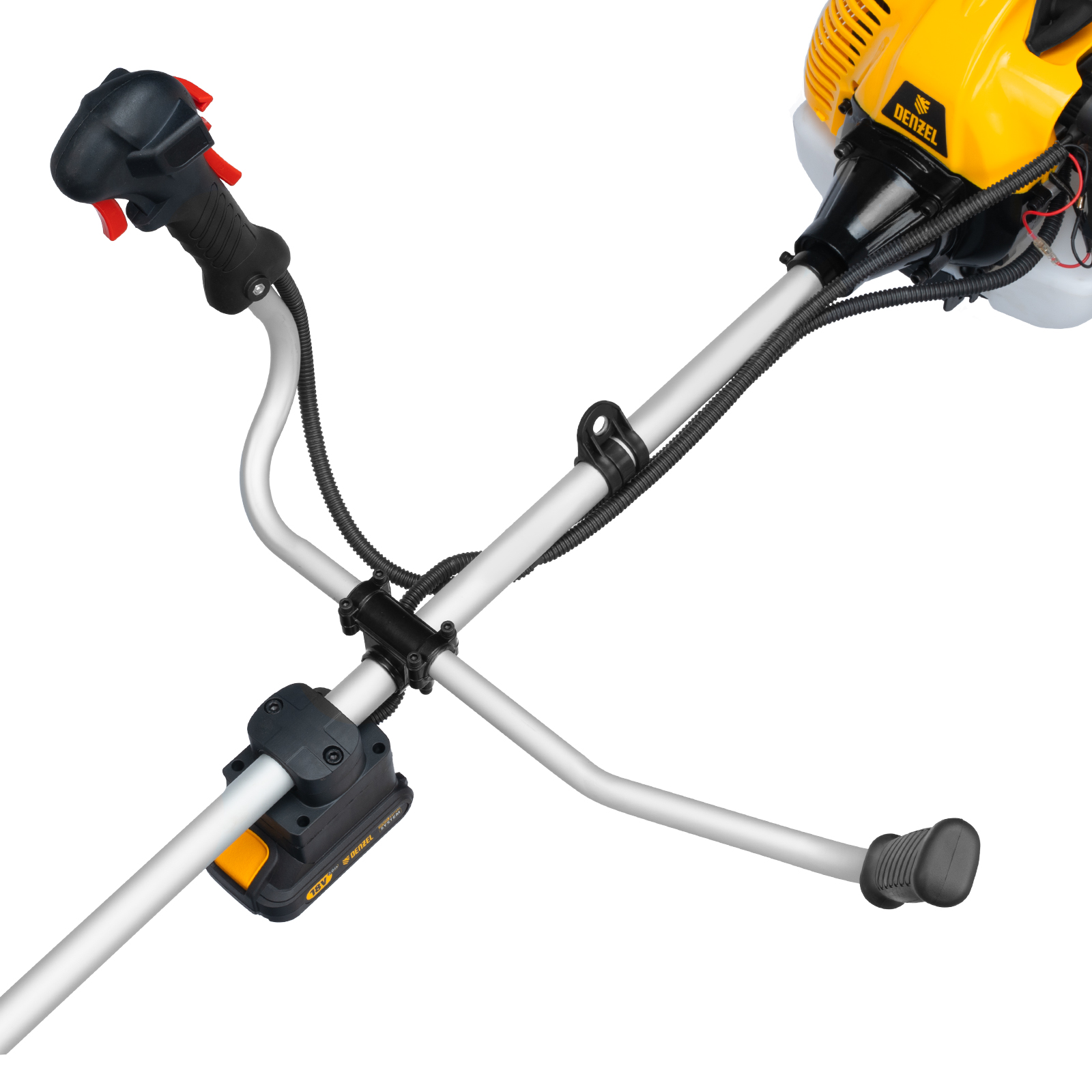 Триммер бензиновый DT-52E, 52 см3, неразъемная штанга, электростартер, состоит из 2 частей Denzel в Екатеринбурге