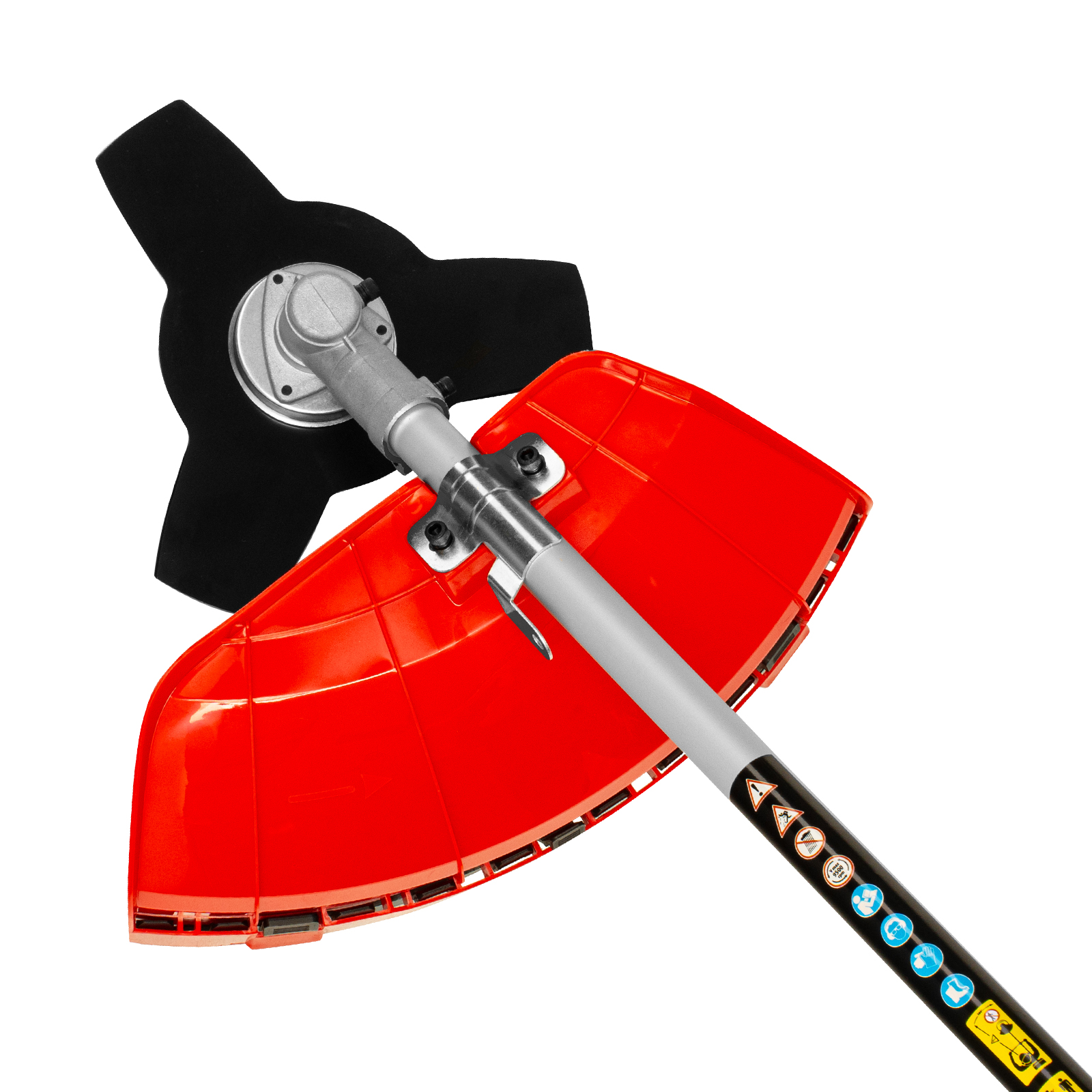 - Безопасность — производитель предусмотрел блокировку курка газа для предотвращения случайного запуска, защитный кожух препятствует вылету травы, веток, камней в сторону пользователя.