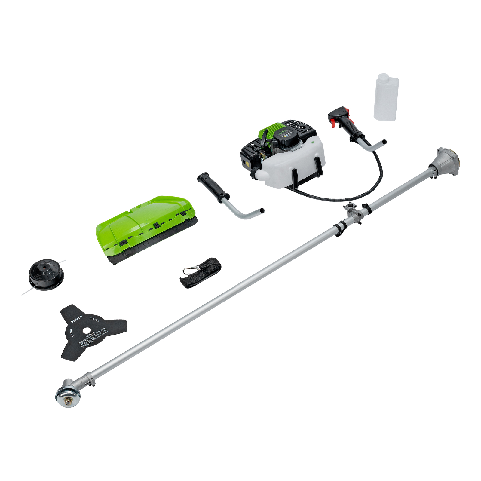 Двигатель с правой рукояткой - 1 шт, левая рукоятка - 1 штШтанга - 1 штЗащитный кожух с ножом - 1 шт, кронштейн защитного кожуха - 1 штКатушка с леской - 1 шт, нож трехлопастной - 1 штДозатор для приготовления смеси - 1 шт Ремень плечевой - 1 штКорпус сцепления с крепежом - 1 шт, редуктор с винтами - 1 штУзел крепления рукояток с крепежом - 1 шт, узел подвеса ремня - 1 штСвечной ключ - 1 шт, имбусовый ключ Н5 - 1 шт, имбусовый ключ Н6 - 1 штБолт M6×20 - 4 шт, болт M5×15 - 2 шт, гайка M5 - 2 штХомут - 2 штРуководство по эксплуатации с гарантийным талоном - 1 шт. |