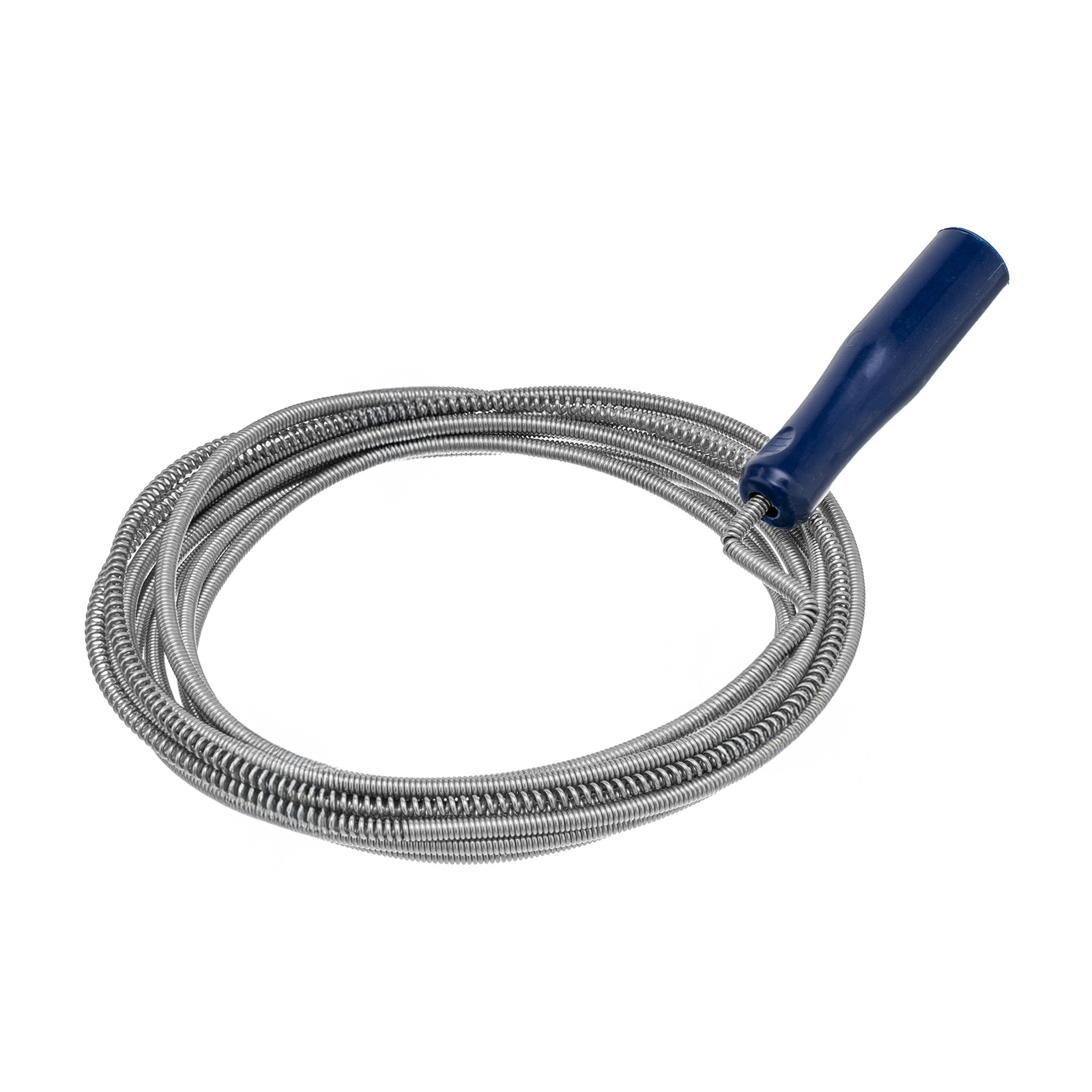 Трос для прочистки труб Сибртех 92462 длиной 5 м и диаметром 6 мм успешно справляется с засорами в канализационных трубах, вызванными скоплением шерсти, волос, жировых отложений. Представляет собой прочную и долговечную спираль с сердечником. Используется в быту.