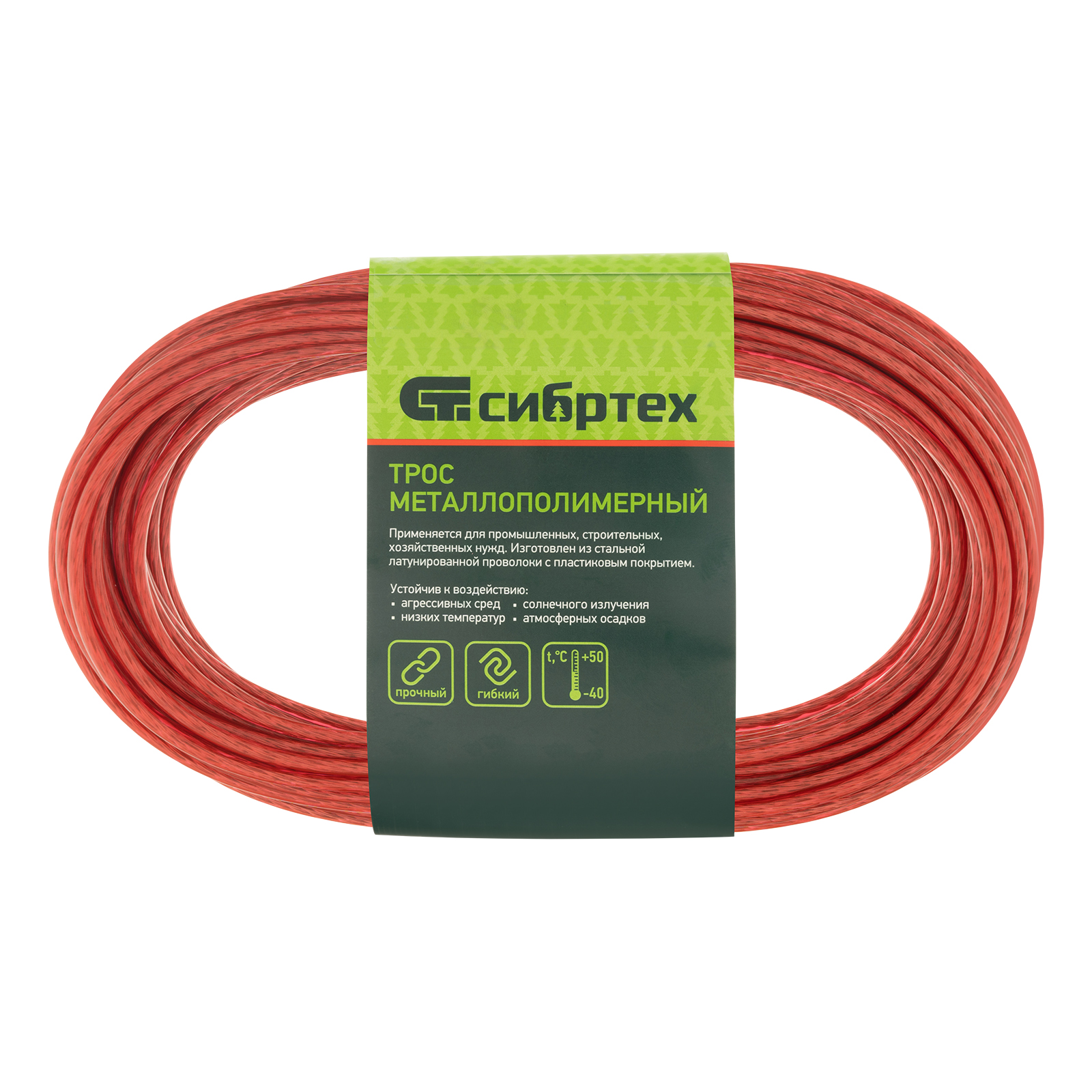 Трос металлополимерный красный ПР-3.0, толщина 3.0 мм, моток 20 метров Сибртех в Екатеринбурге