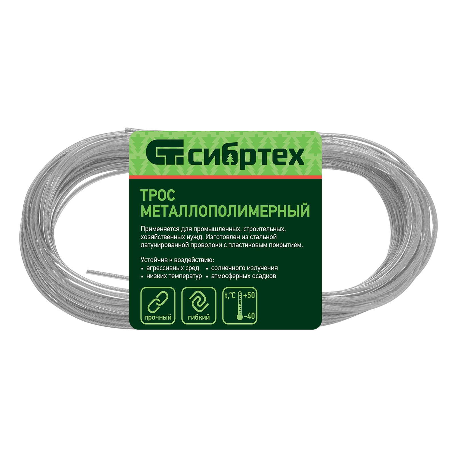 - Дополнительная защита от окисления — трос покрыт пластифицированным поливинилхлоридом.