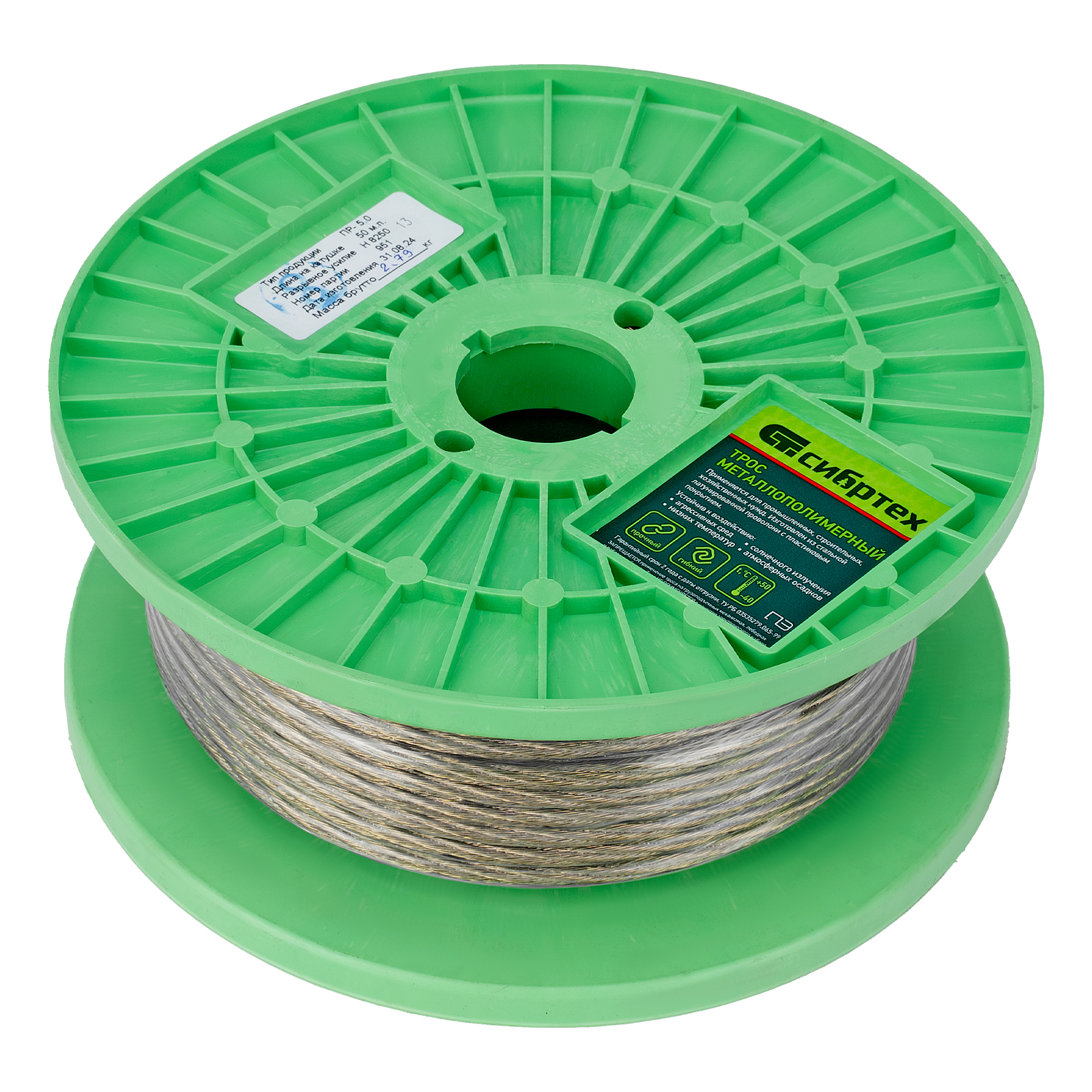 Трос металлополимерный прозрачный ПР-5.0, толщина 5.0 мм, катушка 50 метров Сибртех в Екатеринбурге