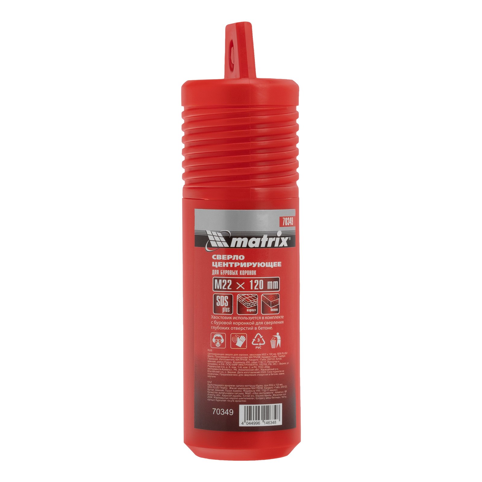 Центрирующее сверло для коронок Matrix 70349 с хвостовиком SDS PLUS длиной 120 мм, с посадкой М22, используется для получения отверстий в бетоне. Позволяет выполнять глубокое засверливание, предотвращает смещение коронки и повышает точность работы.