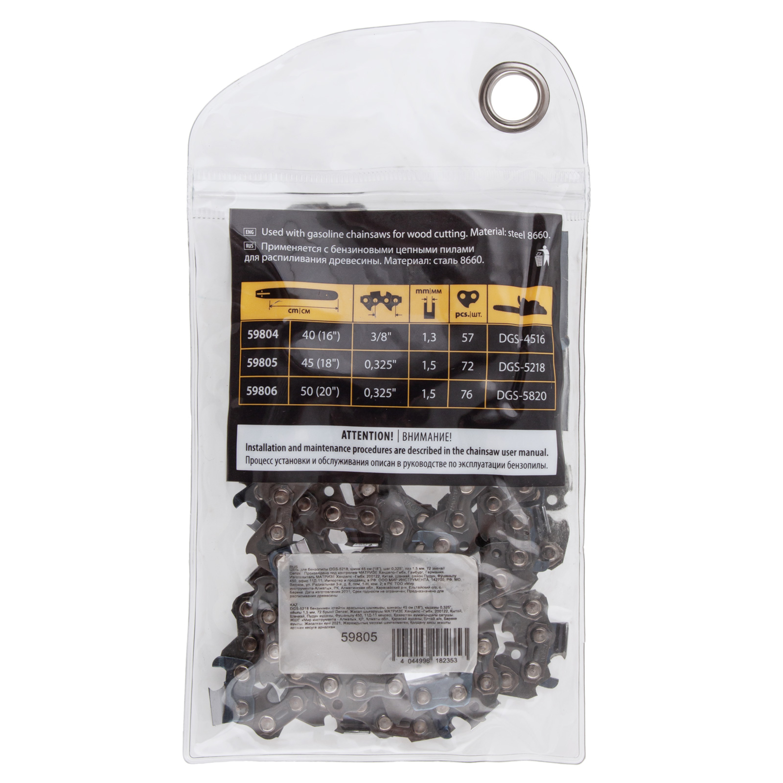 Цепь для бензопилы DGS-5218, шина 45 см (18") шаг 0.325", паз 1.5 мм, 72 звена Denzel в Екатеринбурге