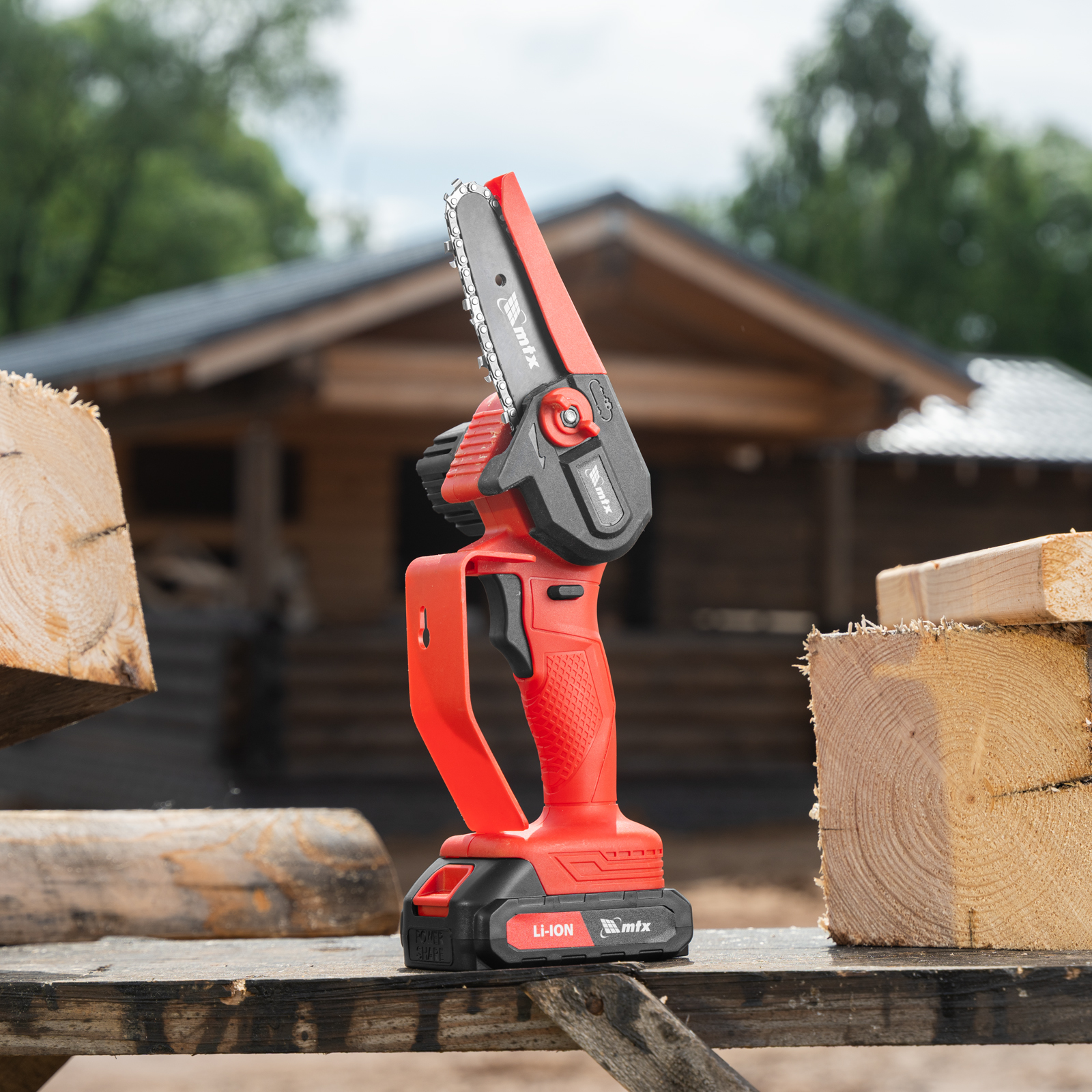 Аккумуляторная цепная мини-пила MTX MCS-100 58640 с шиной длиной 100 мм предназначена для отпиливания веток и сучков, а также пиления бруса толщиной до 100 мм. Работает от аккумулятора Li-Ion 20 В емкостью 2 А·ч, пригодится для работы на садовом участке и в мастерской, также пилу удобно брать на выездные работы.