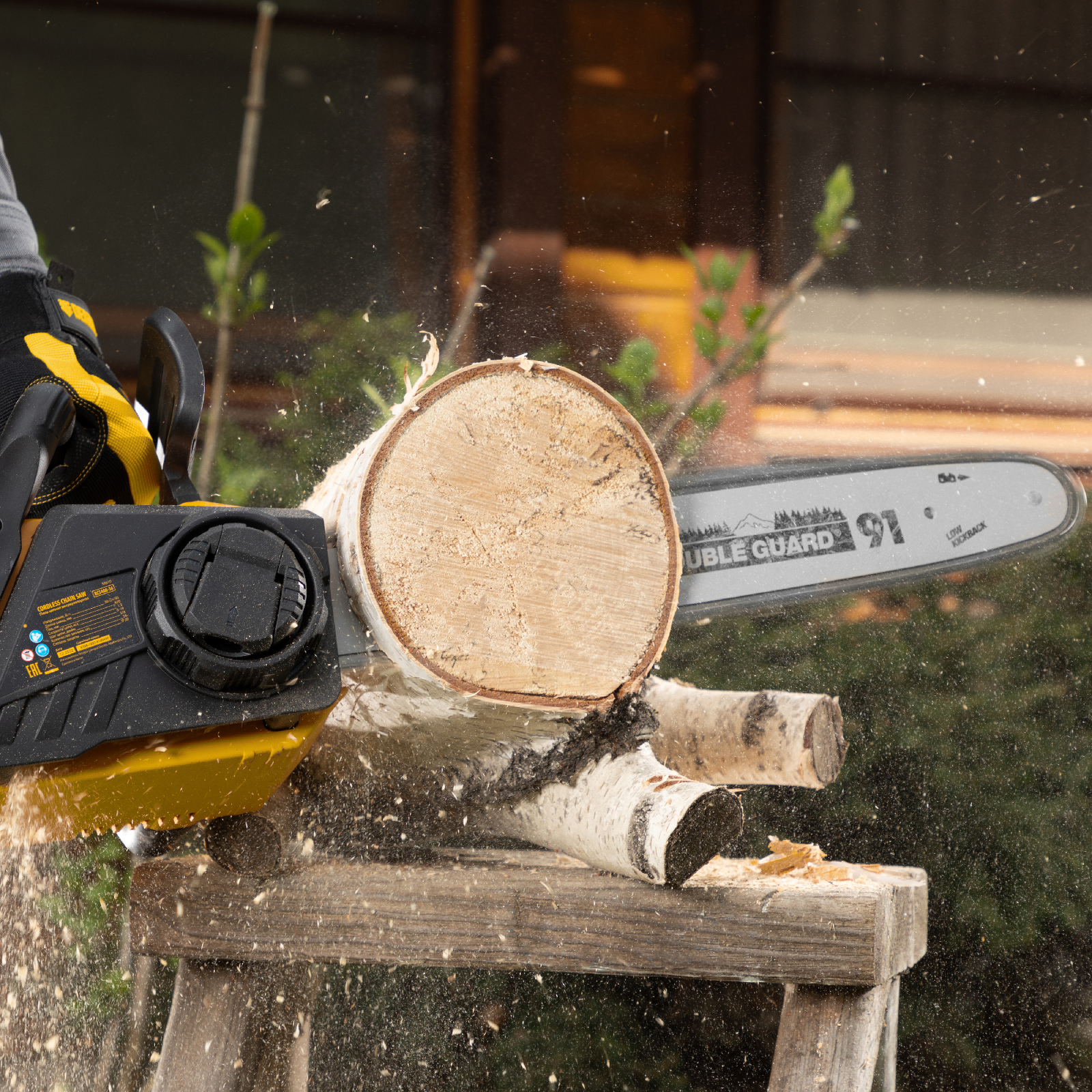 - Комфортная работа — в сравнении с бензиновыми пилами, аккумуляторная модель не создает сильных вибраций и имеет достаточно низкий уровень шума.