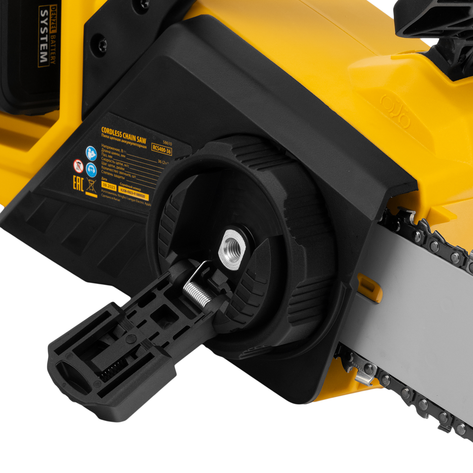 Цепная пила аккумуляторная бесщеточная RCS400-36, Li-ion, 36 В, 4 Ач, шина 400 мм Denzel в Екатеринбурге