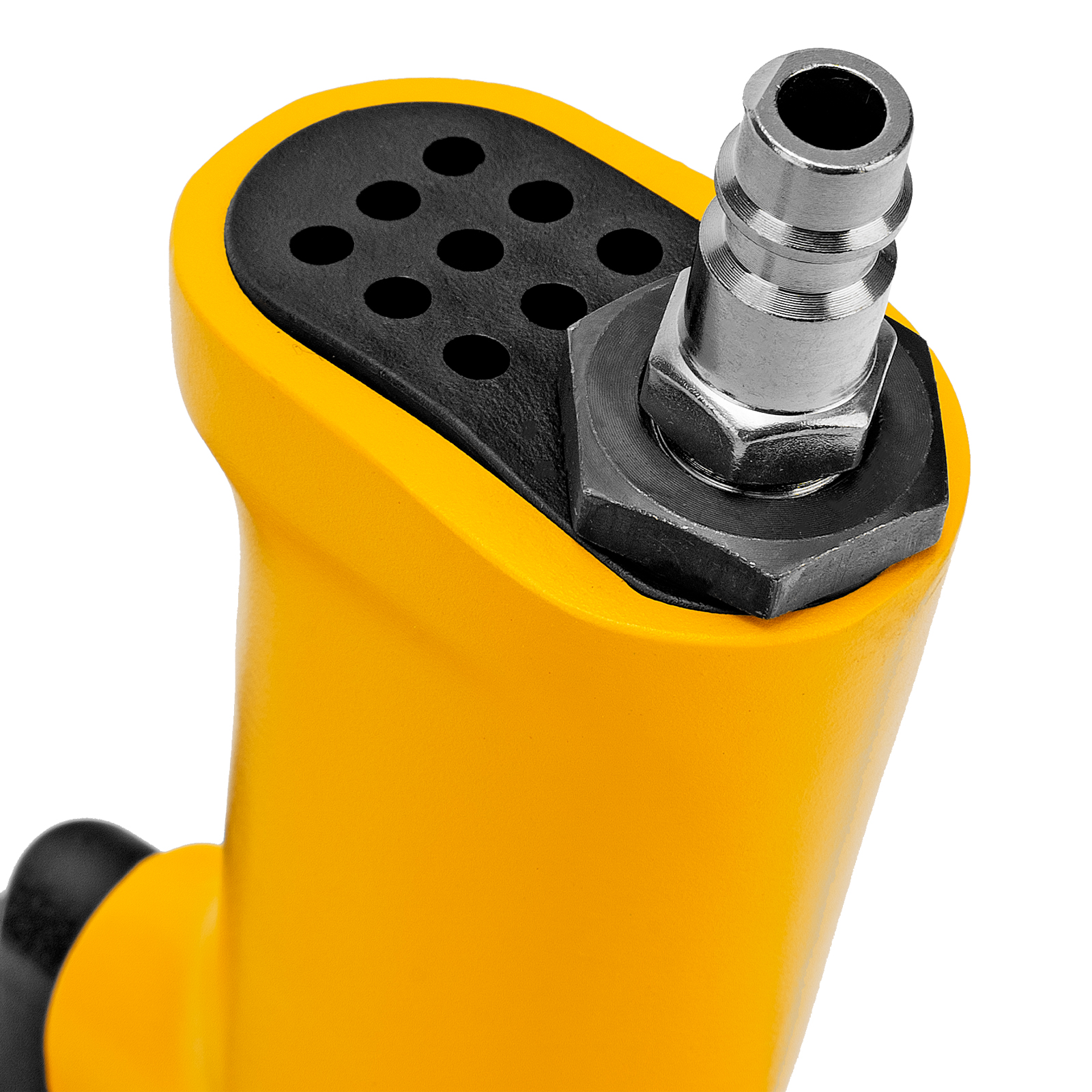 - Комфортная работа — отработанный воздух выходит через отверстие в нижней части рукоятки и не мешает пользователю.