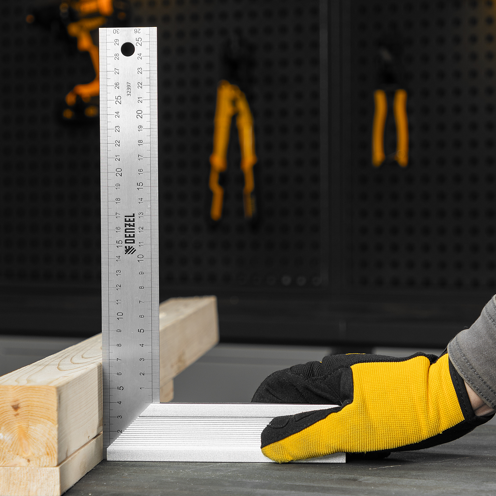 Угольник стальной 300 мм, нержавеющая сталь, градуировка, алюминиевое основание Denzel в Екатеринбурге