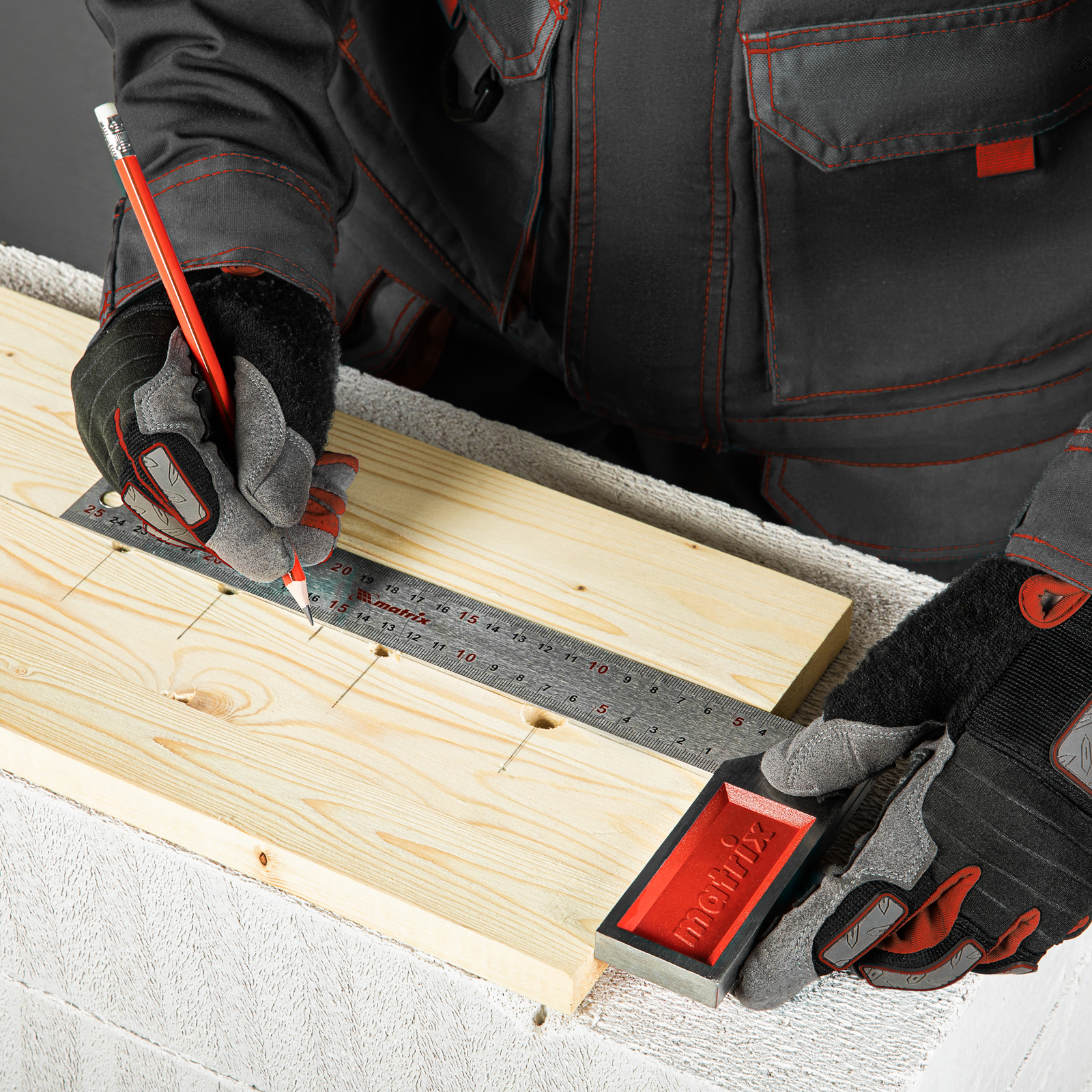 Стальной угольник Matrix 32391 длиной 300 мм, с градуировкой, — измерительный инструмент для построения и контроля углов. Будет полезен для проведения столярных и строительных работ.