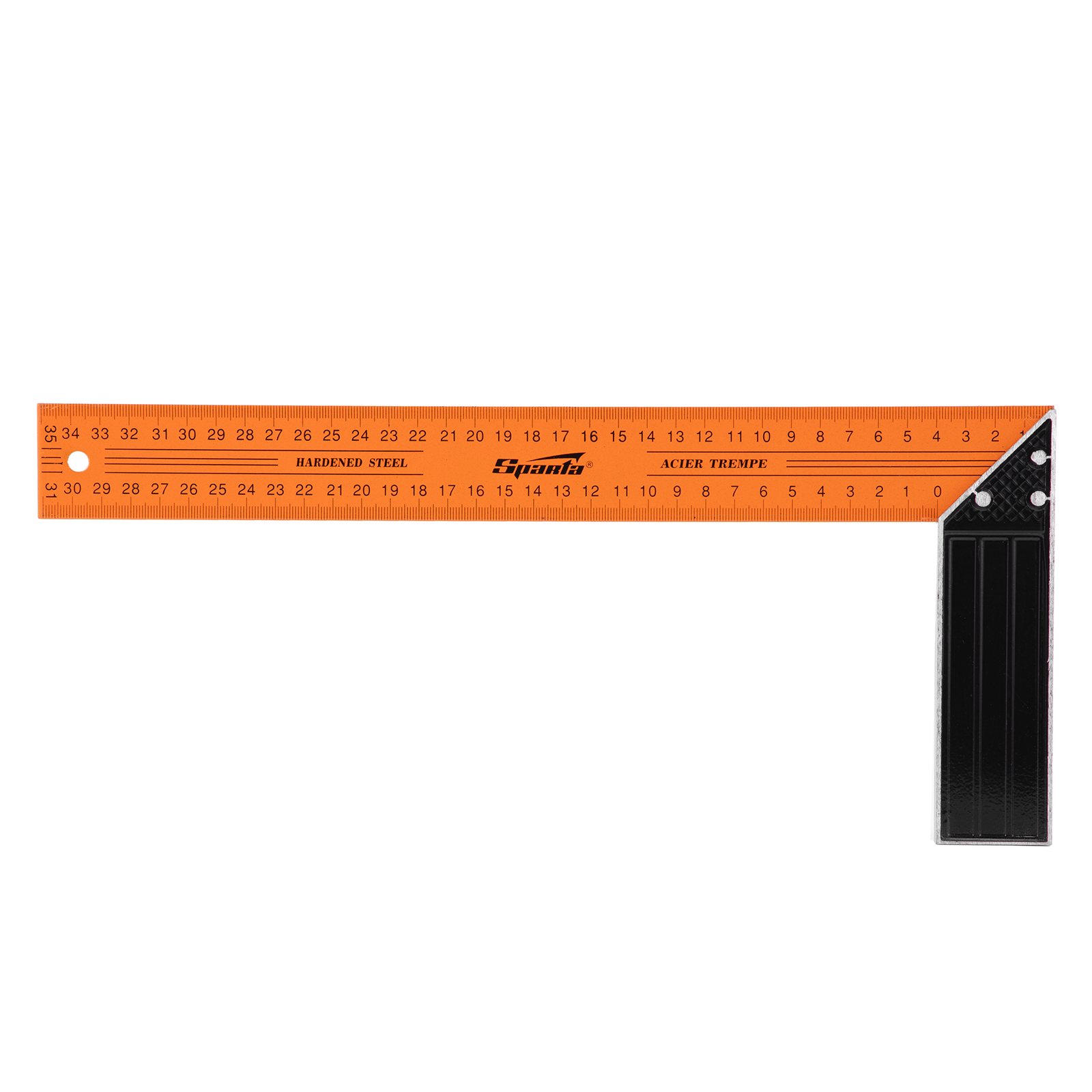 Металлический угольник Sparta 323465 длиной 350 мм пригодится для выполнения столярных и строительных работ. С его помощью можно задать и проверить угол 90° при сборке или обработке различных изделий.